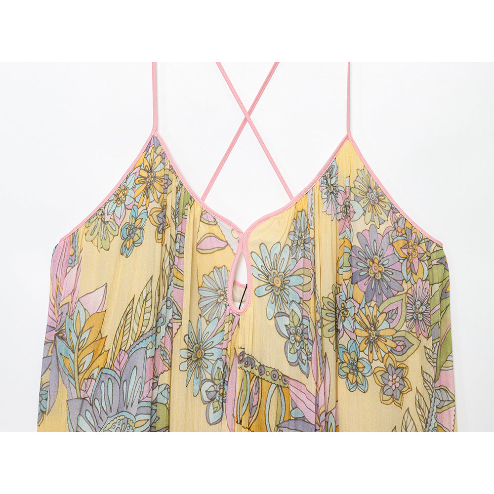 2025 Women's Fashion Loose Sleeveless Printed suspender Midi Dress