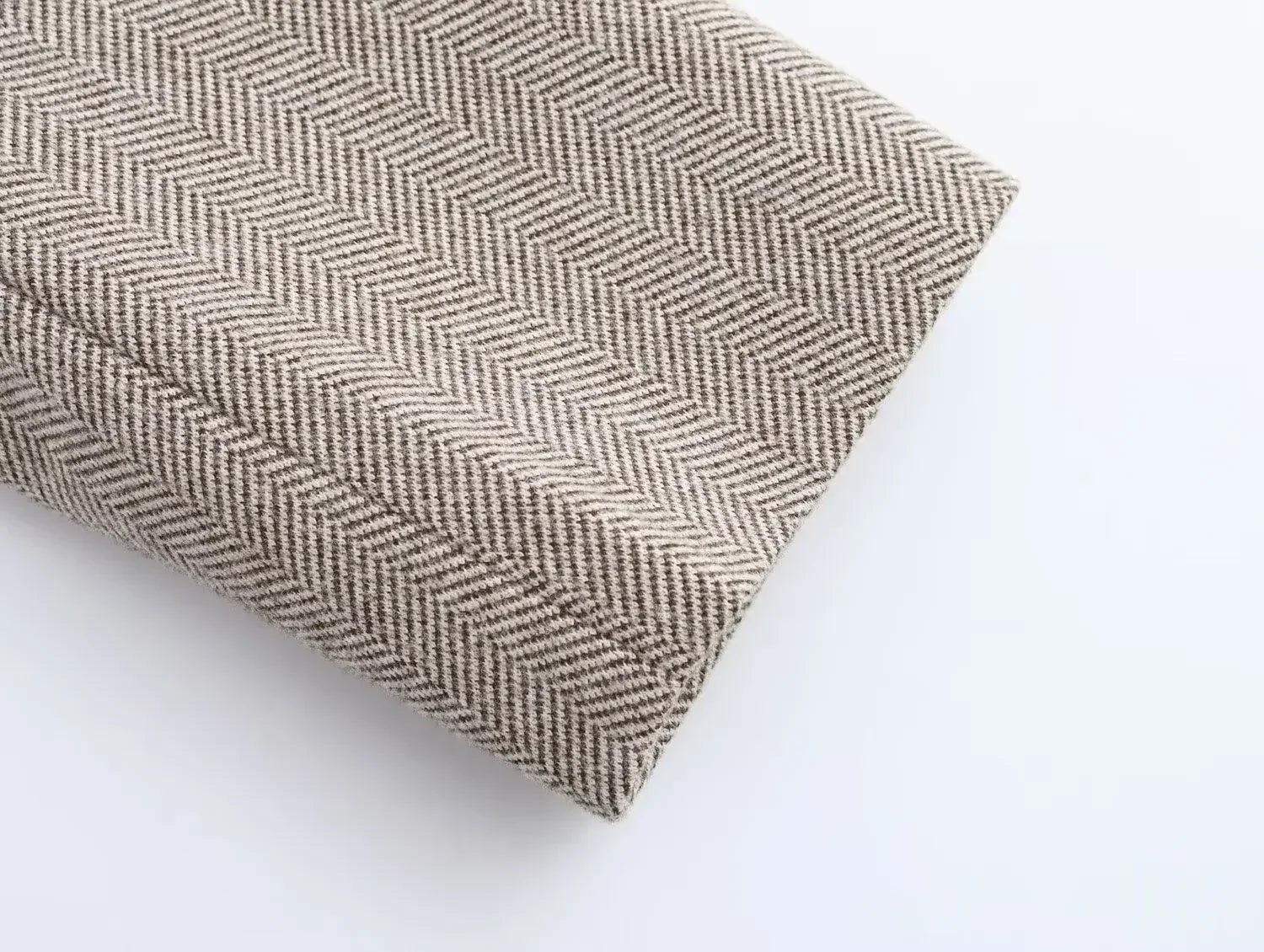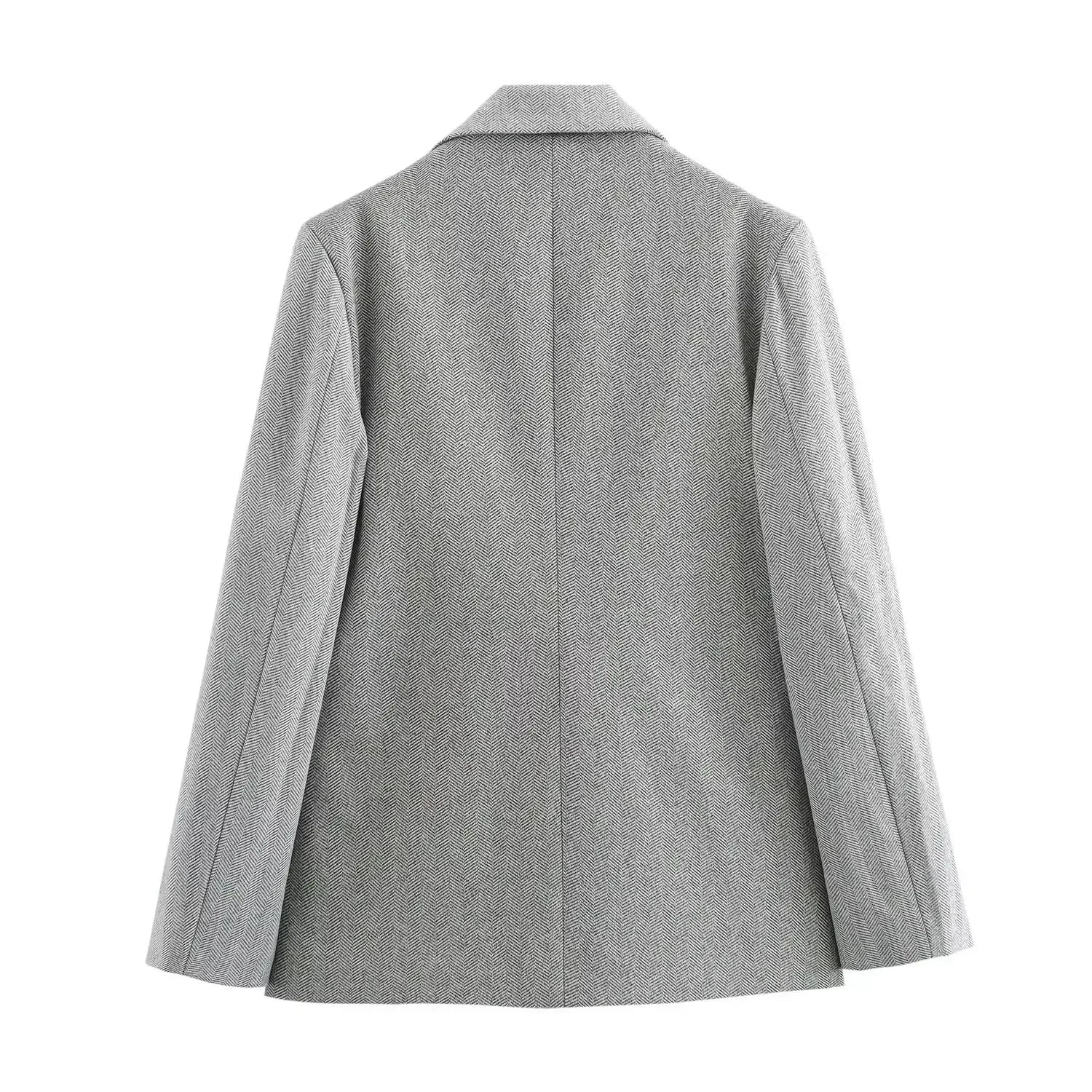 Ladies' 2024 new fashion flip decoration loose herringbone diagonal suit coat retro long sleeved button up women's coat chic top