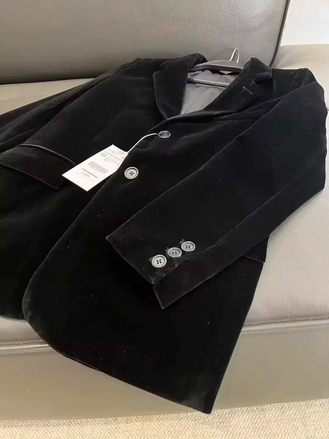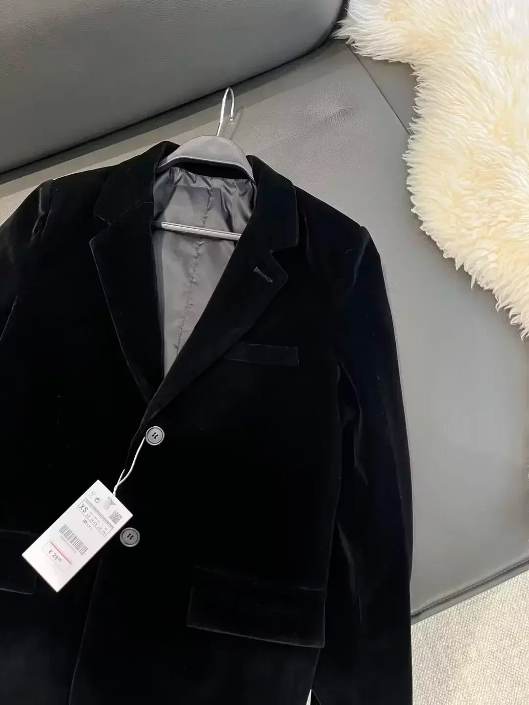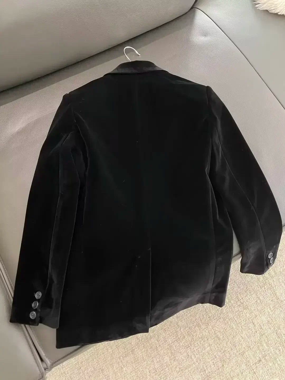 Ladies' new fashion flip Design loose suede Velvet suit coat retro long sleeved Button-up women's coat chic top