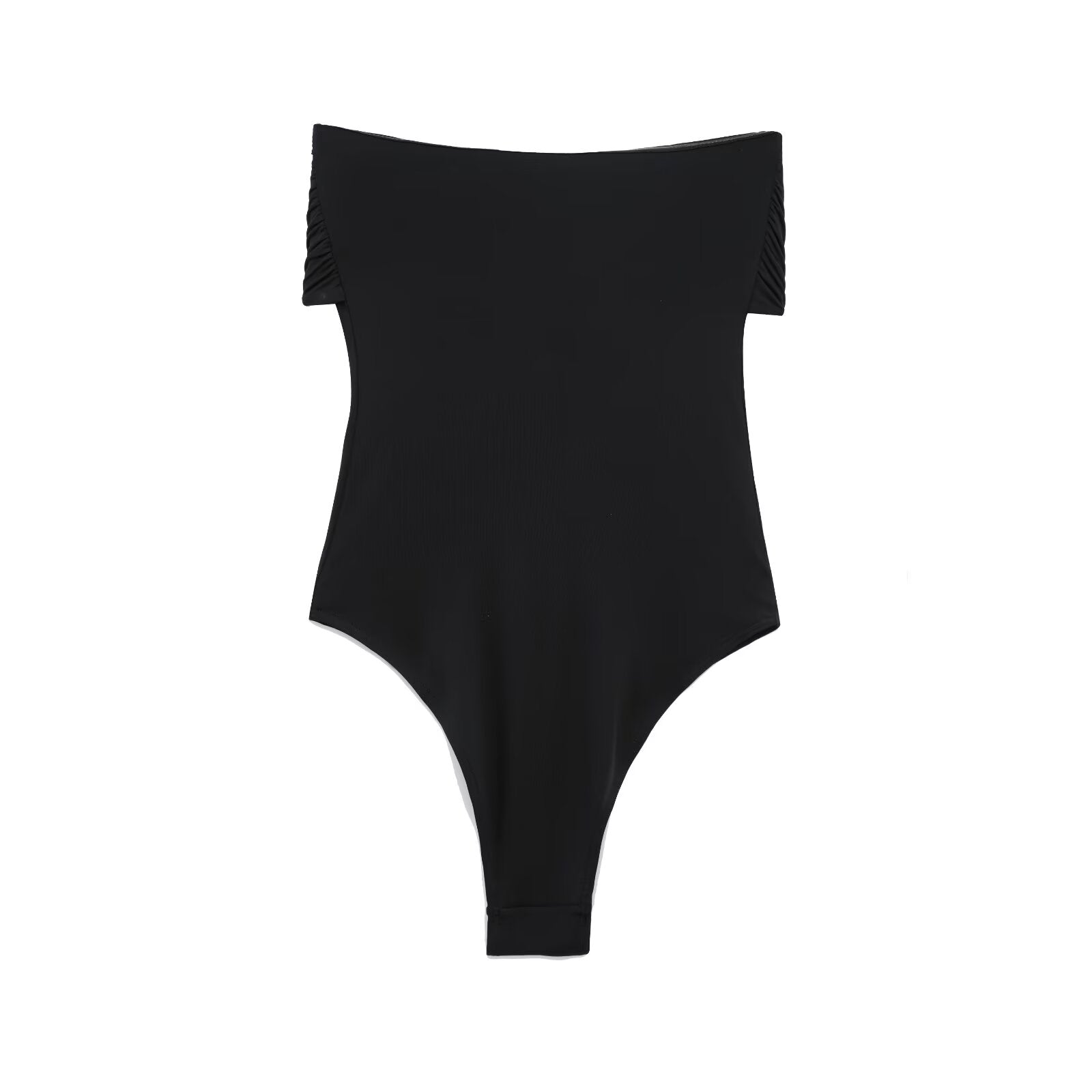 Ladies' new fashion pleated decoration tight strapless swimsuit retro sleeveless backless women's swimsuit