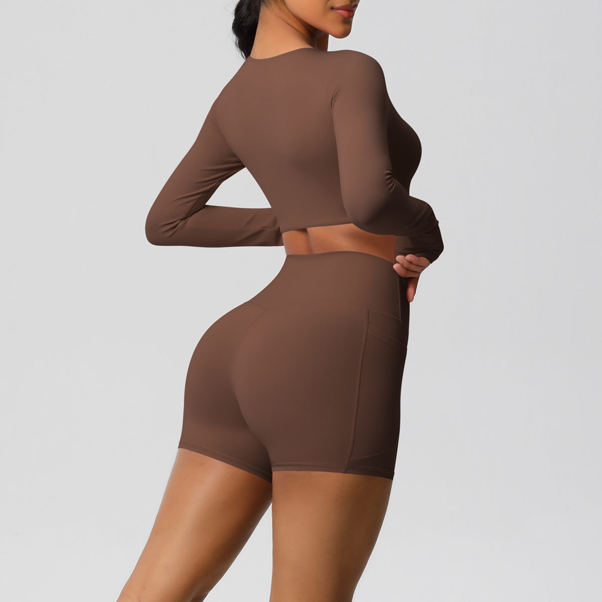 Ladies' New Solid Color Double-sided Nylon Sanding with Chest Pad Yoga Suit Sports Running Fitness Two-piece Suit
