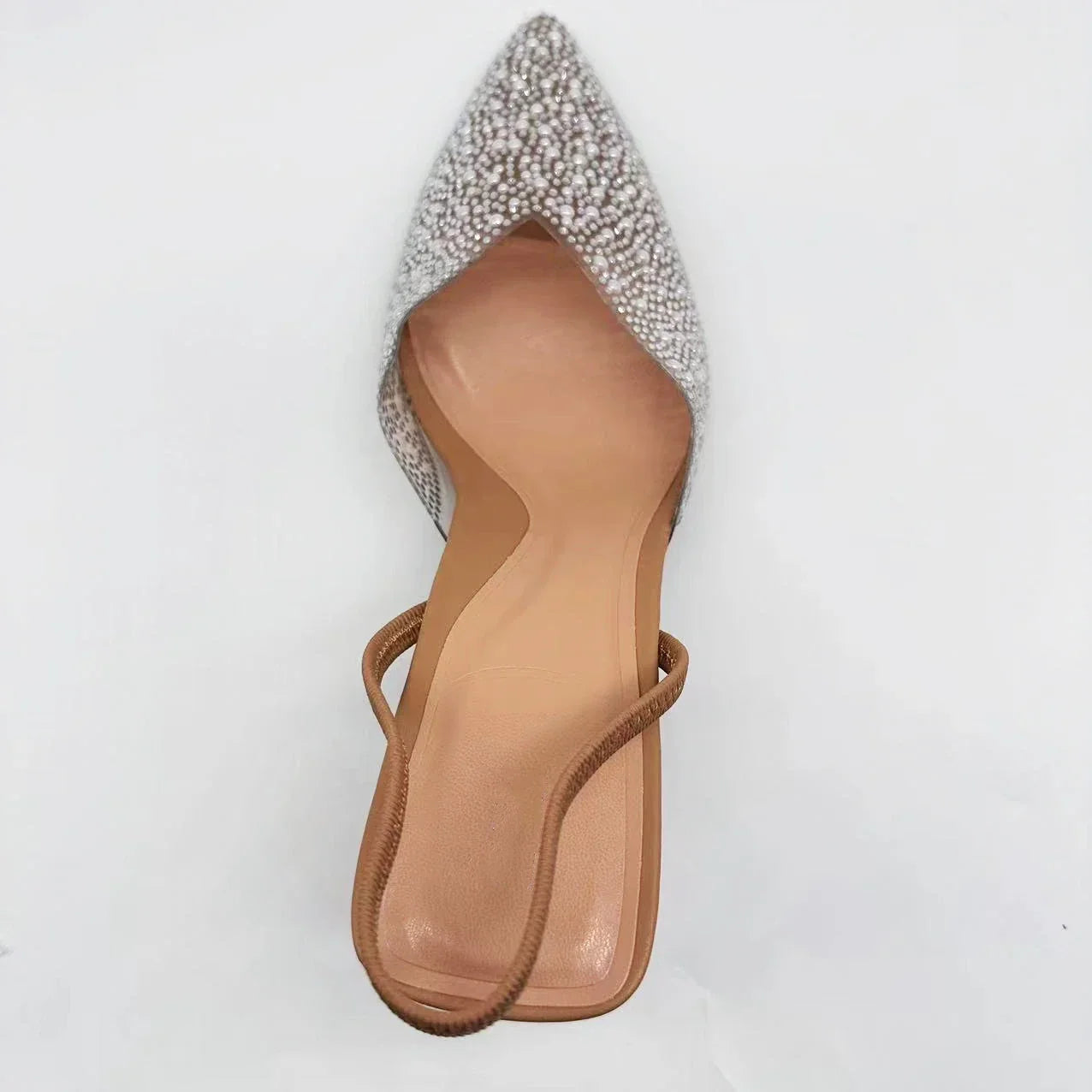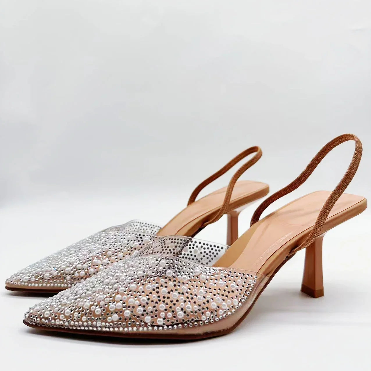 New 2024 Women's Shoes Brown Artificial Pearls With High Heels and Pointed Shoes Sandals Women