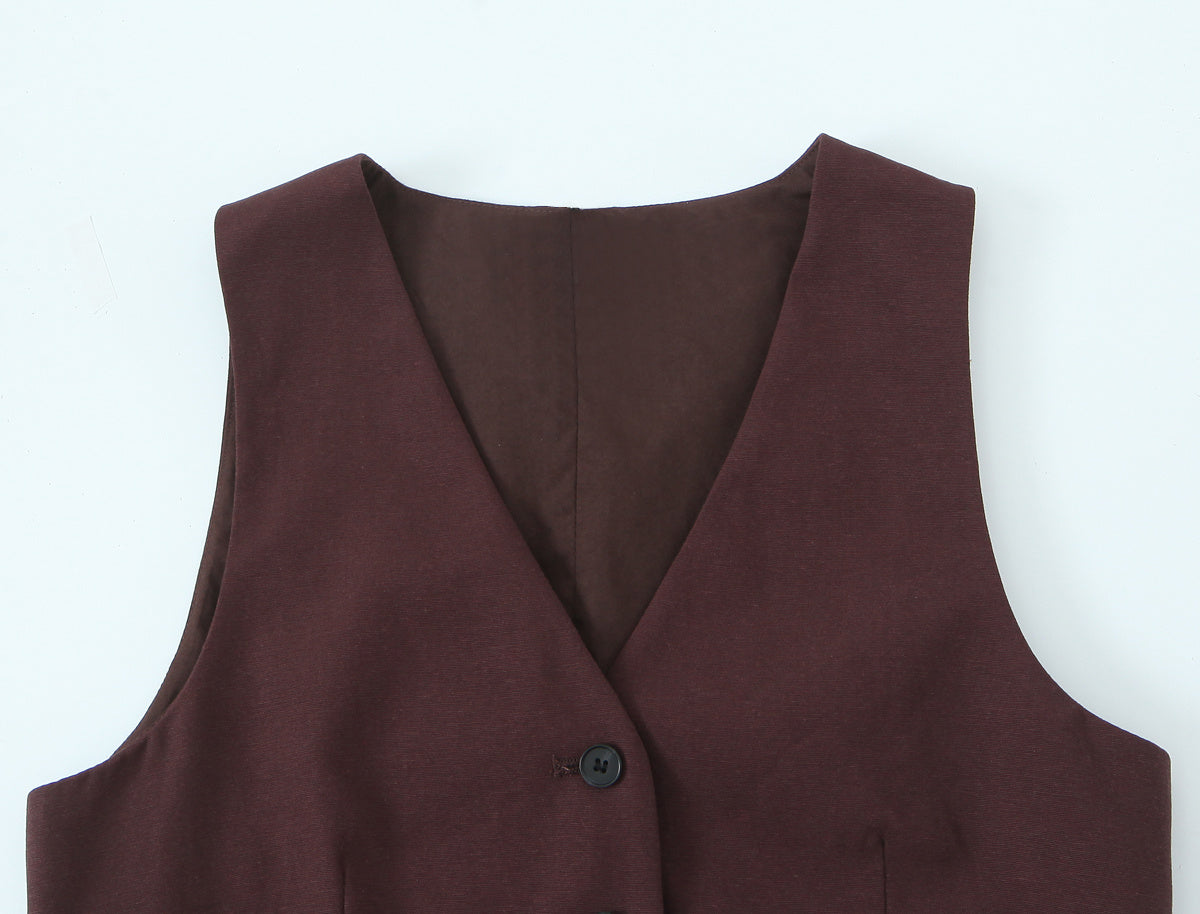 set woman 2 pieces2025 Fashion Back opening design waistcoatTops Vintage Female + Pants Women's suit