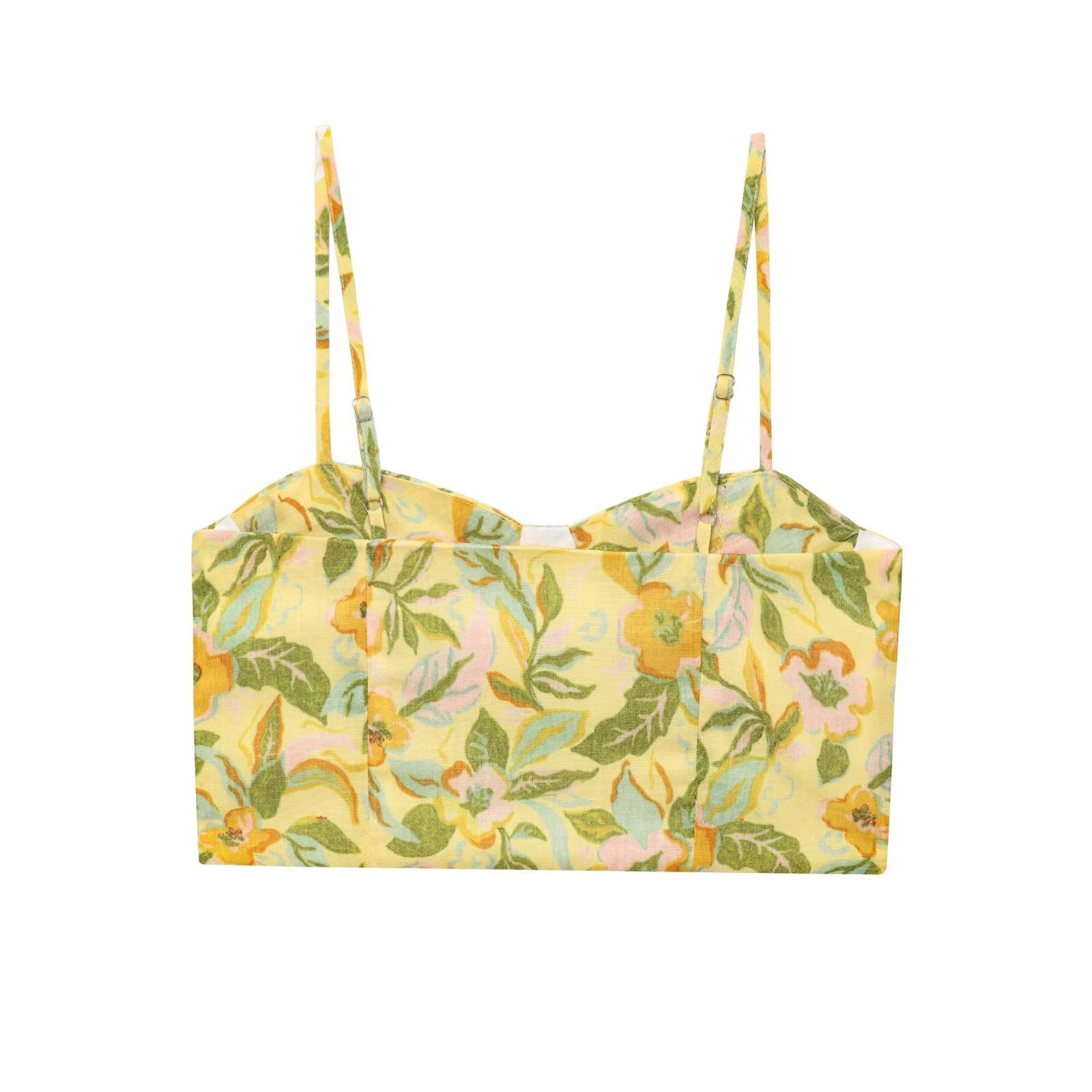 set Women's 2 pieces fashion linen blend printed short suspender top+Skirts suit