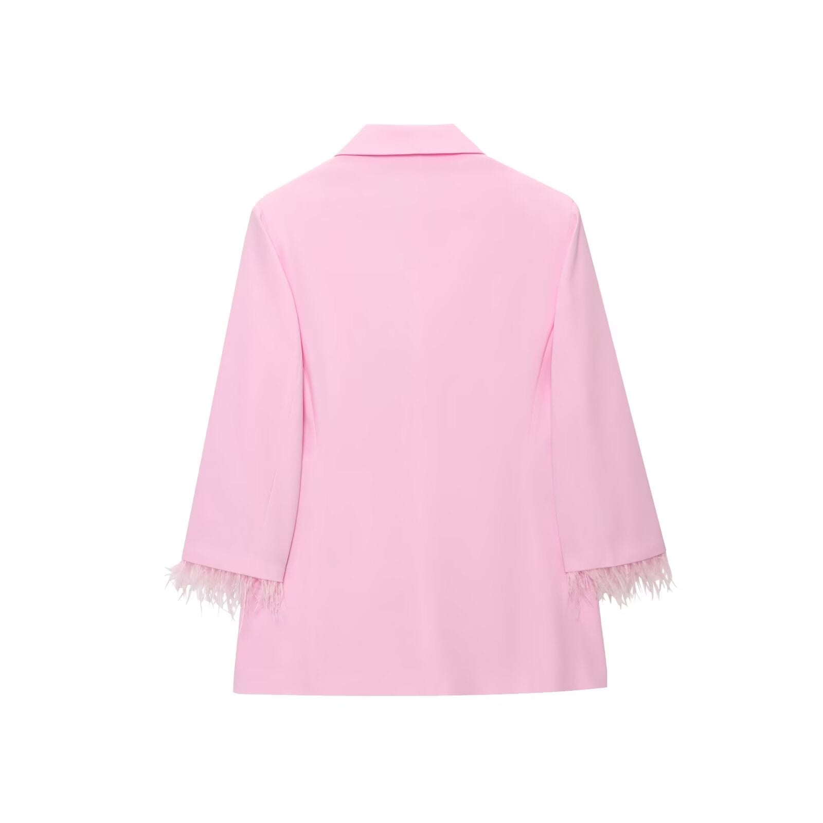 set Women's 2 pieces new fashion Feathered Cuff Casual Single breasted Suit Coat+Pants Suit