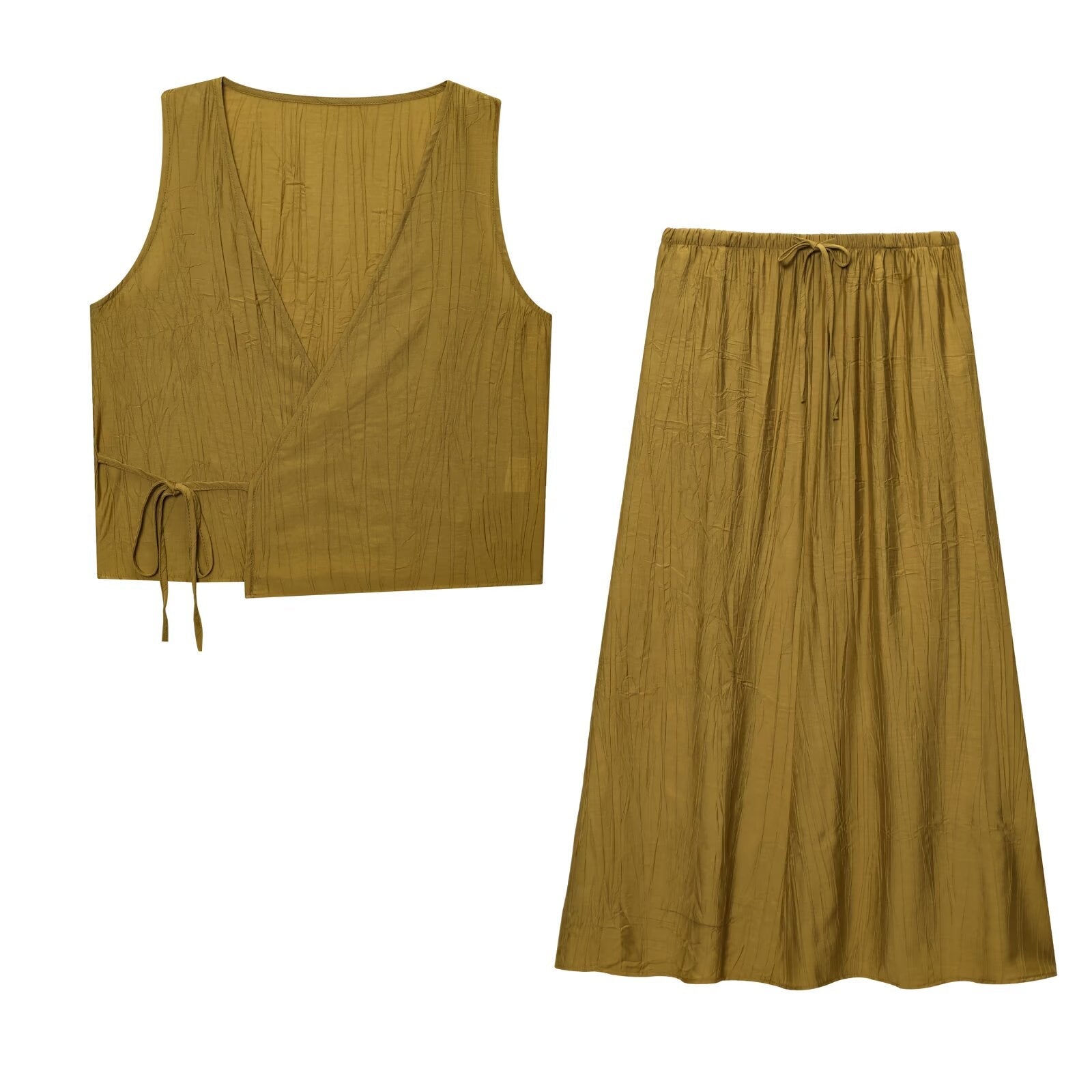 Suit women's 2 pieces 2025 fashion wrinkle effect vest top+pants women's suit