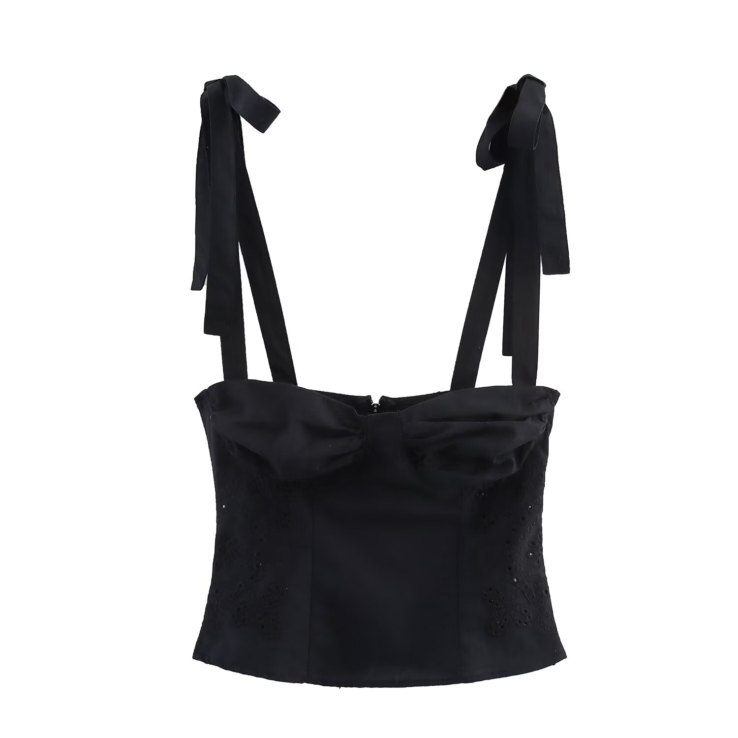 Suit Women's 2 pieces New Fashion bow strap short embroidered top+Pants suit