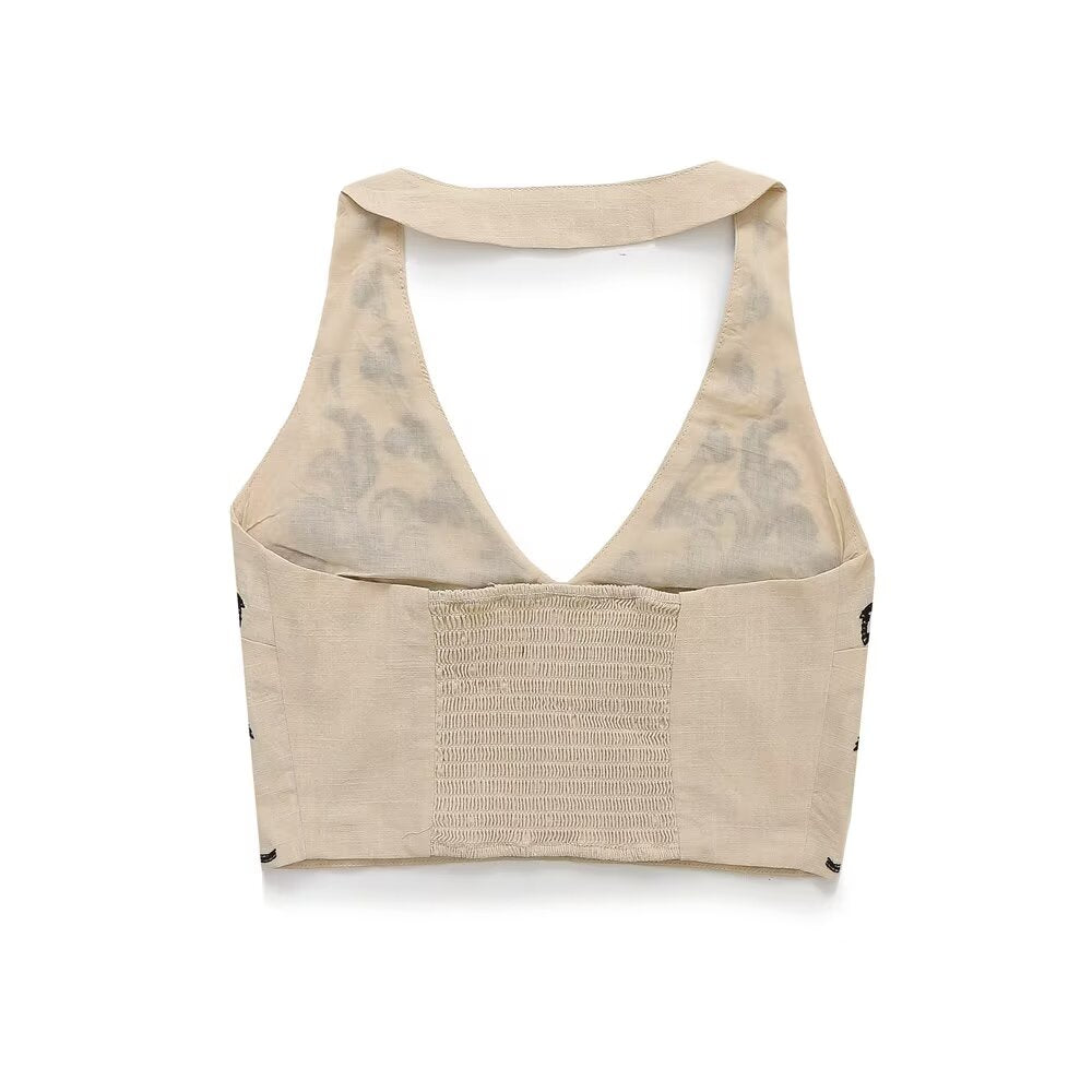 suit Women's 2 pieces new fashion short embroidered hanging neck top+Skirts suit