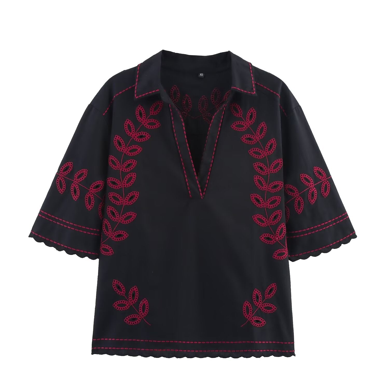suit Women's 2 pieces new short sleeved lapel embroidered shirt+ Shorts suit