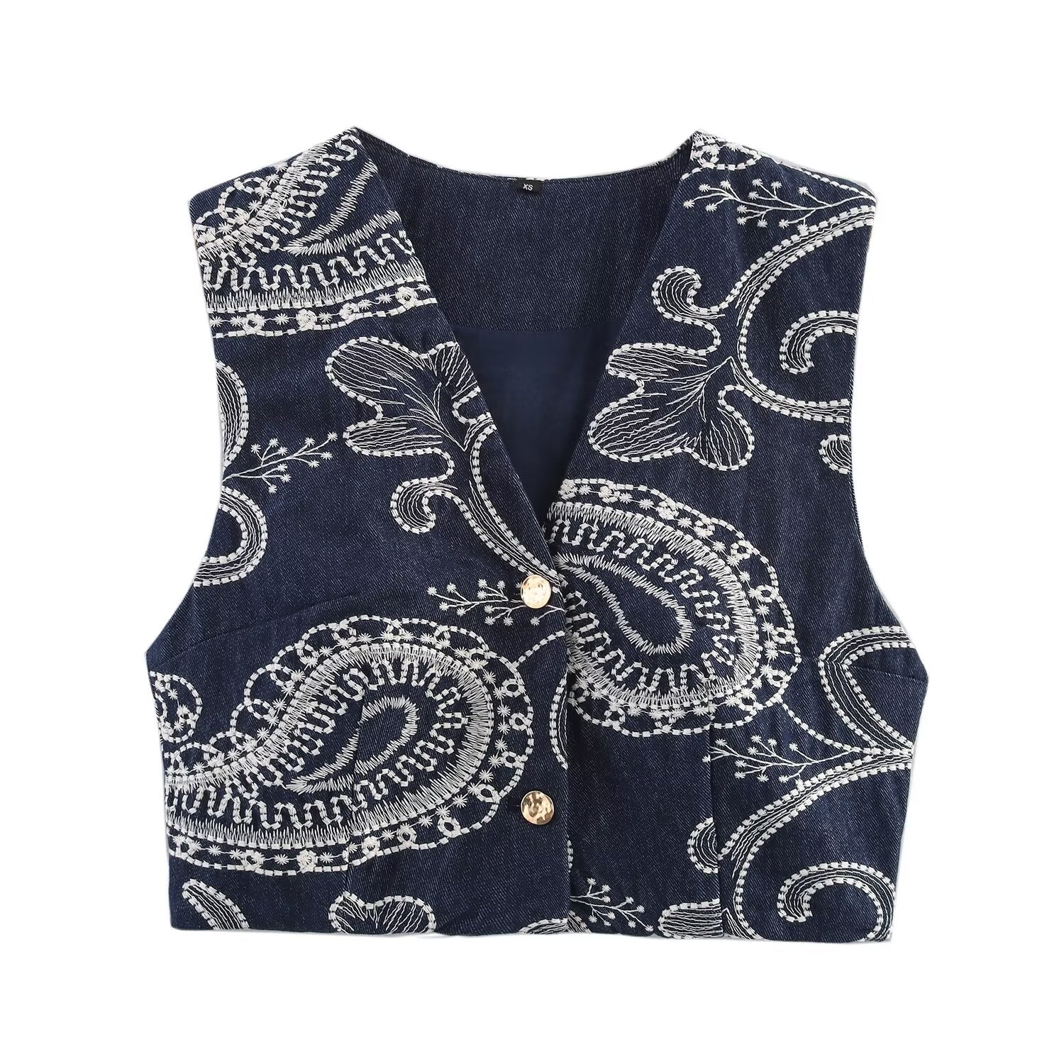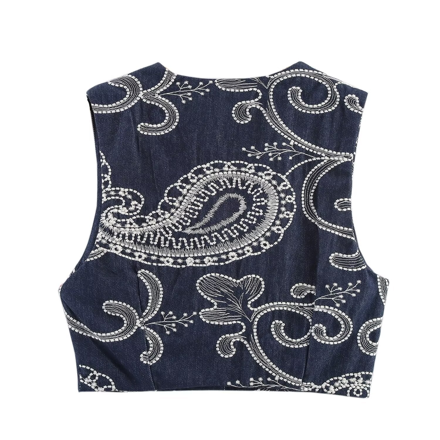 suit Women's 2 pieces New short V-neck embroidered vest style top + Shorts Skirts suit