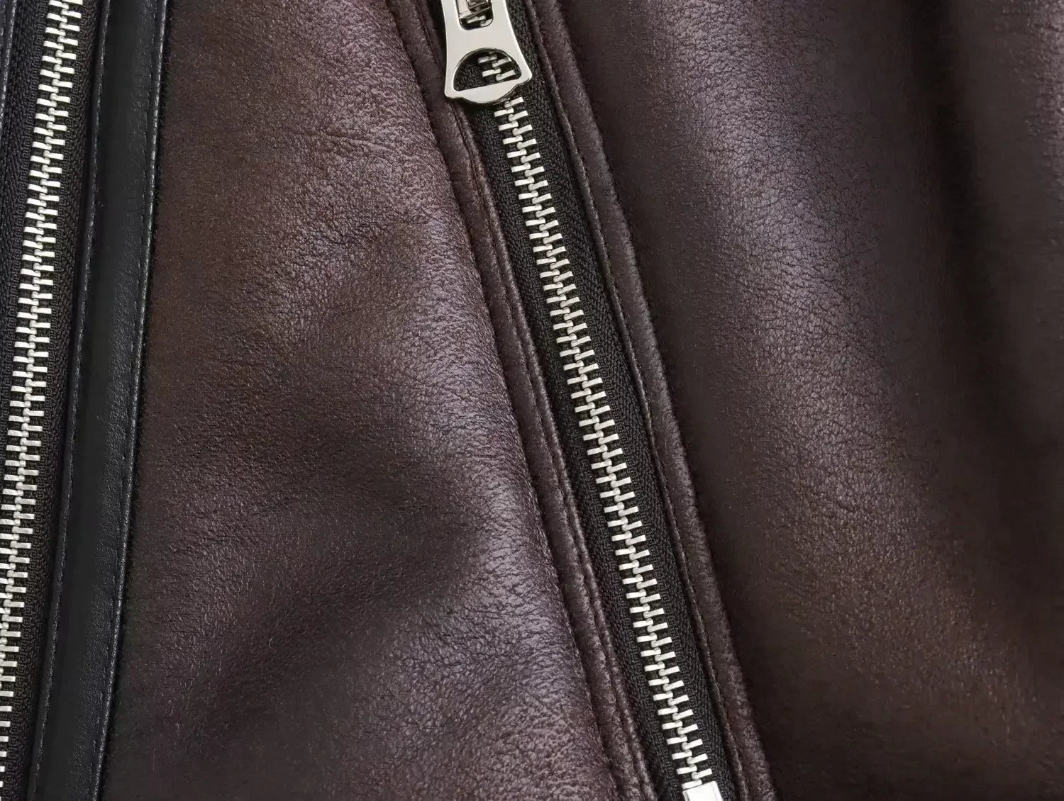 Women New Fashion With belt Warm two-sided Fur Faux Leather Jacket Coat Vintage Long Sleeve Zipper Female Outerwear Tops
