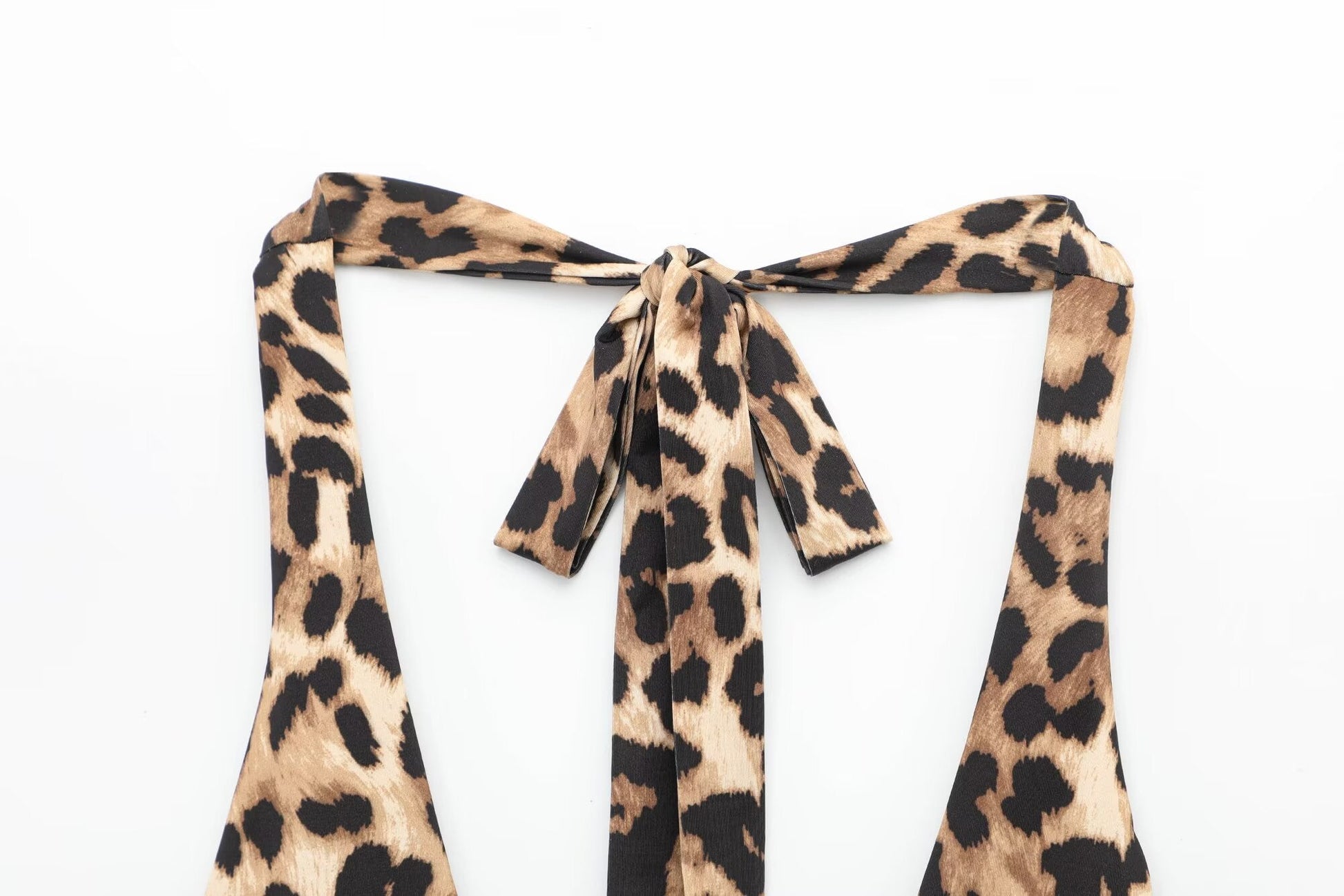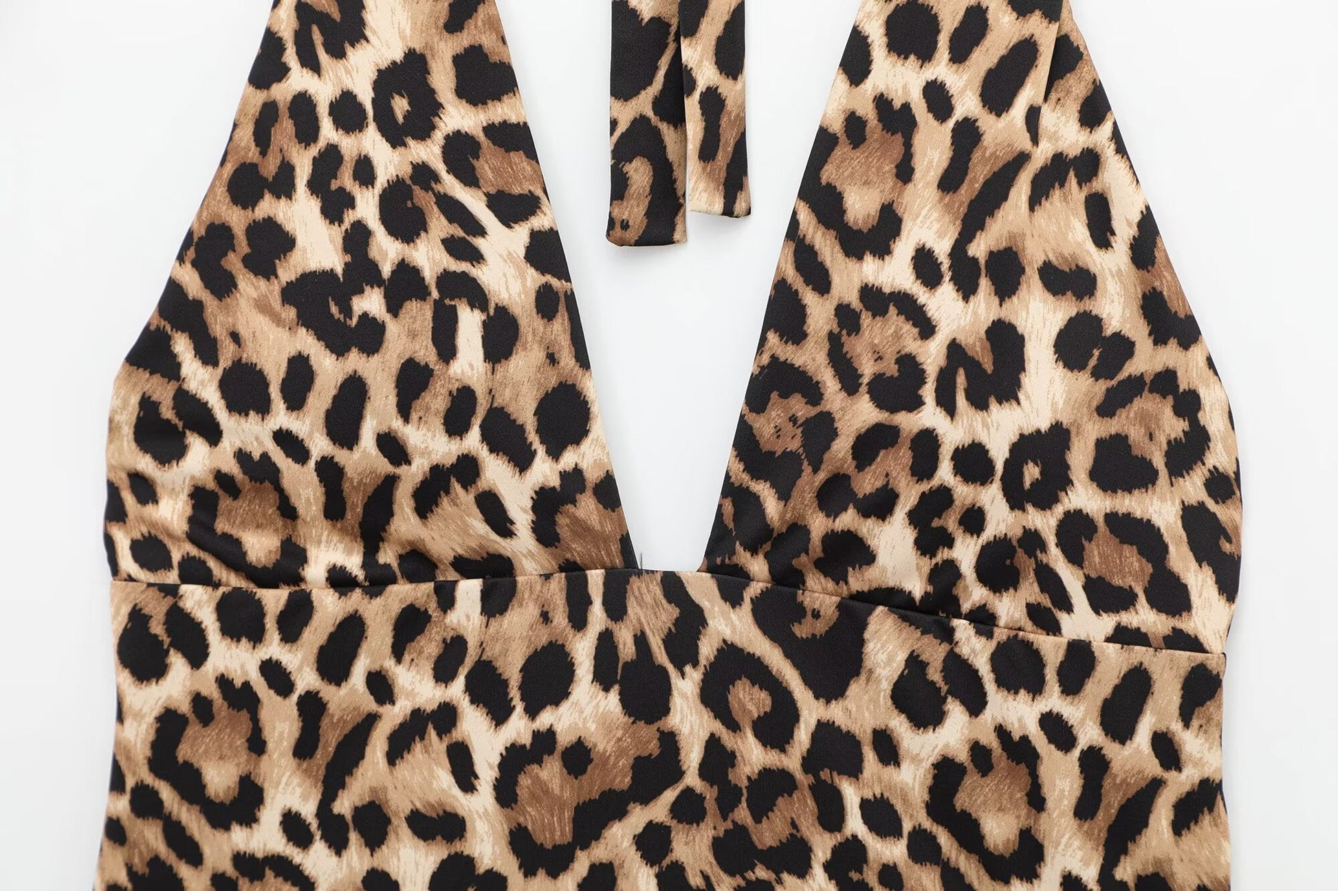 Women's 2025 new fashion striped print Hanging neck swimsuit retro sleeveless backless women's swimsuit