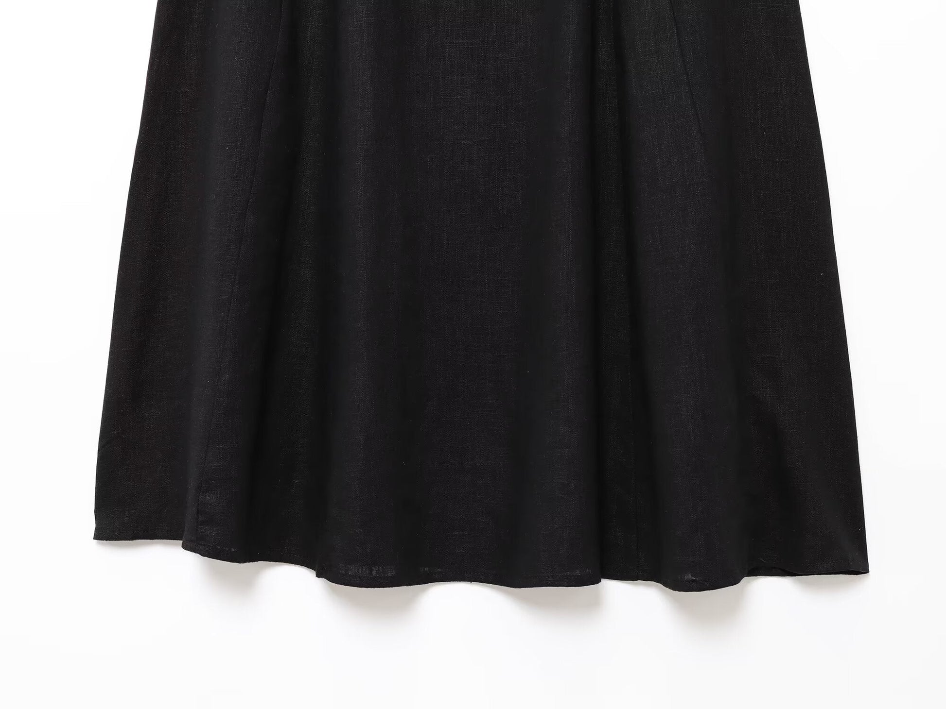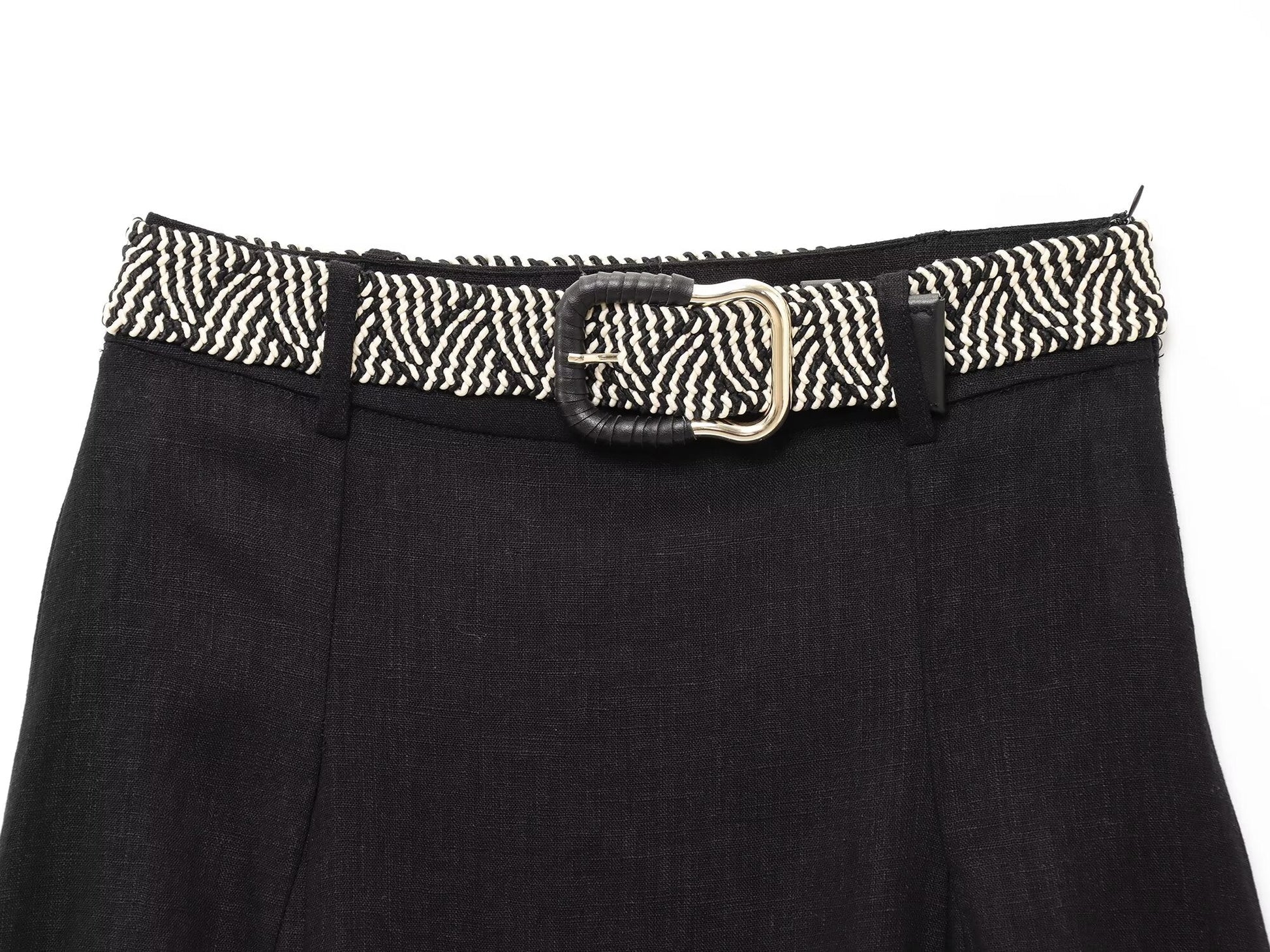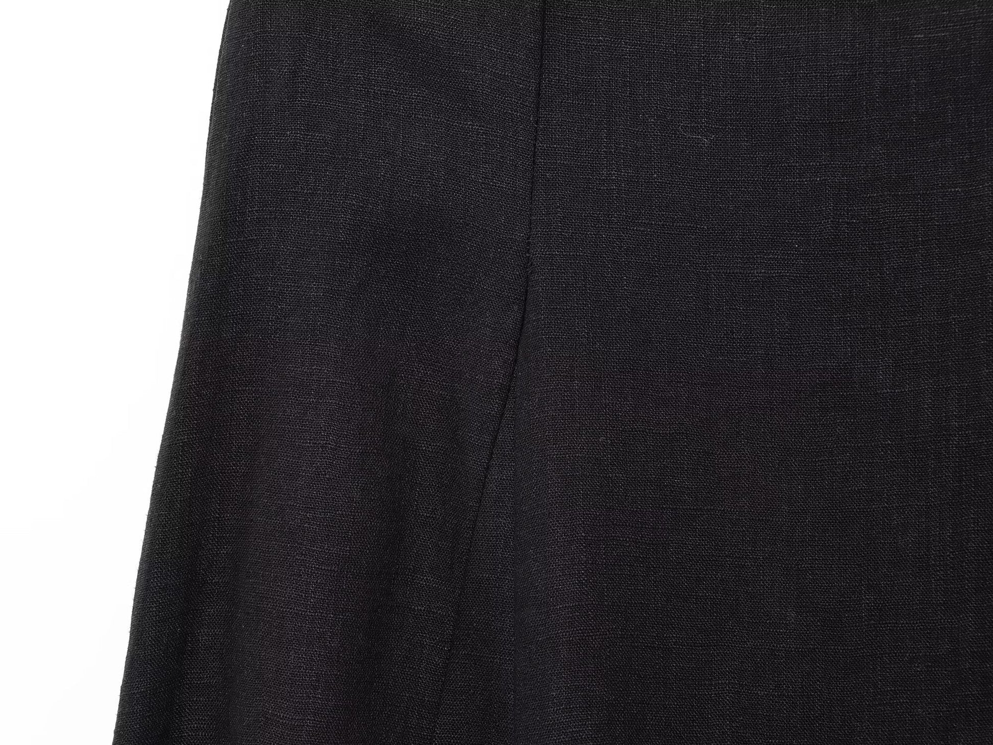 Women's 2025 New Fashion With Belt Linen Blended Midi Skirt Retro High Waist Side Zipper Women's Skirt