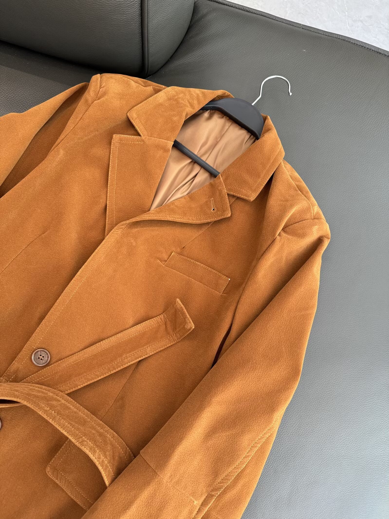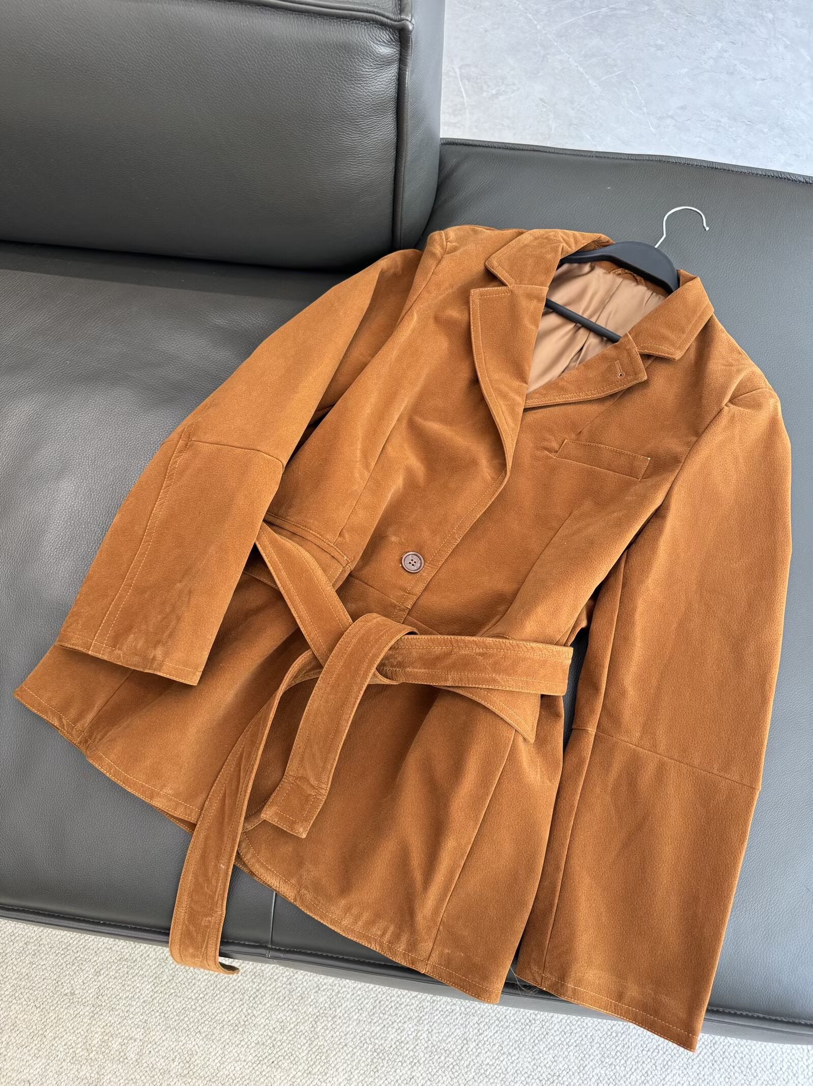 Women's 2025 new fashion with Belt loose suede suit jacket