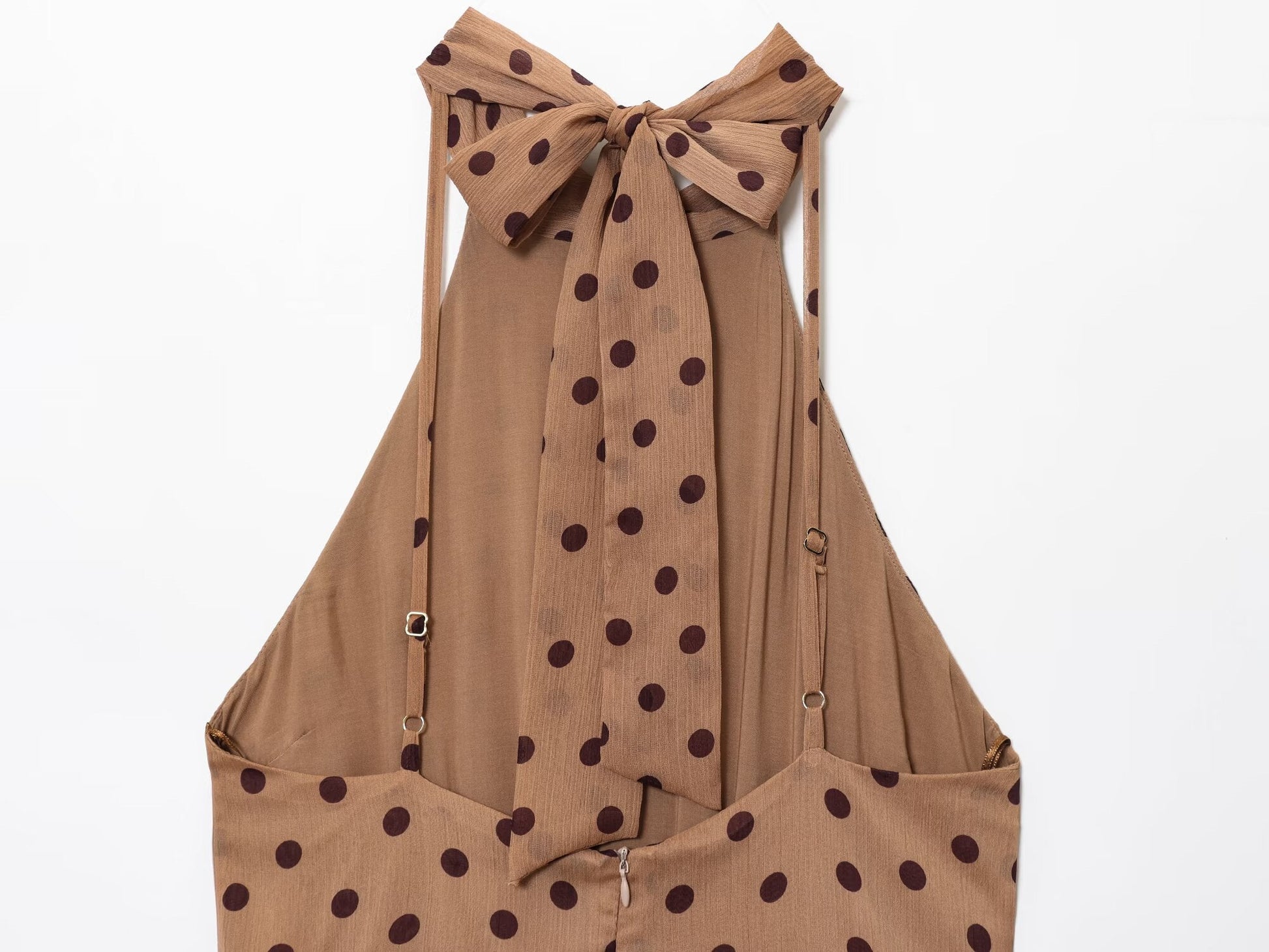 Women's chic fashion With Belt polka dot hanging neck MIDI dress