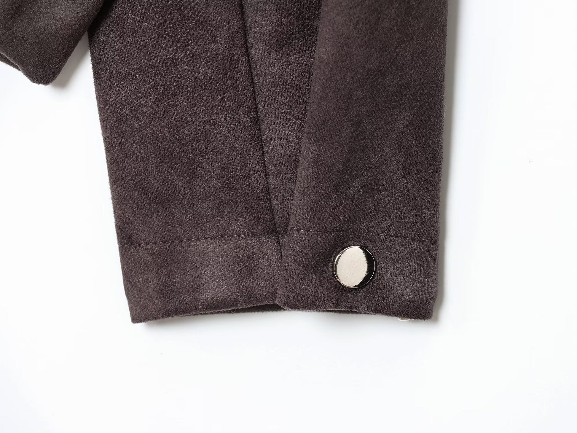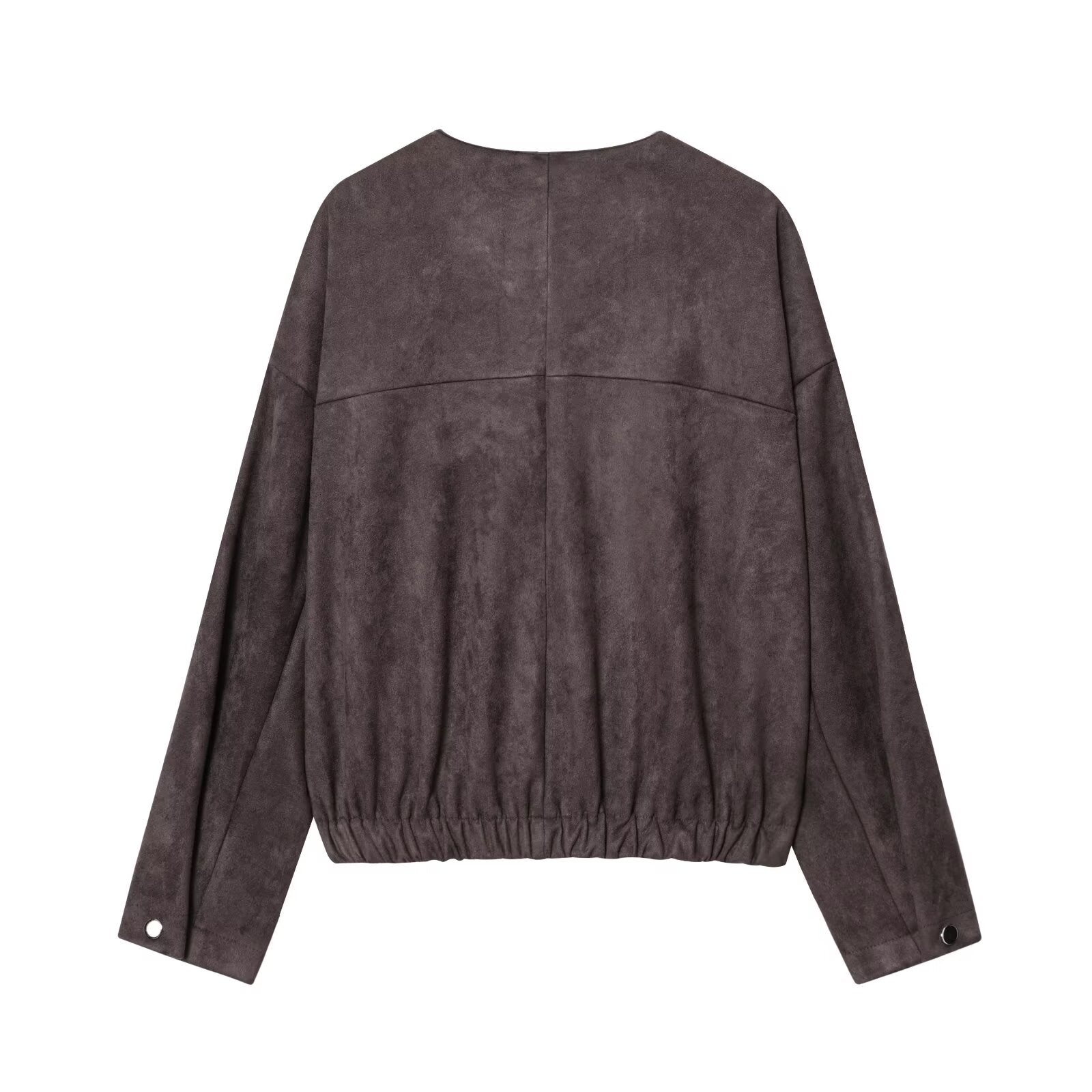 Women's new fashion anti suede effect O-Neck zipper jacket Coat