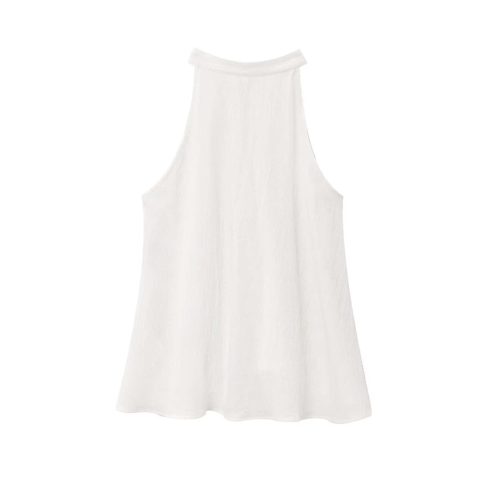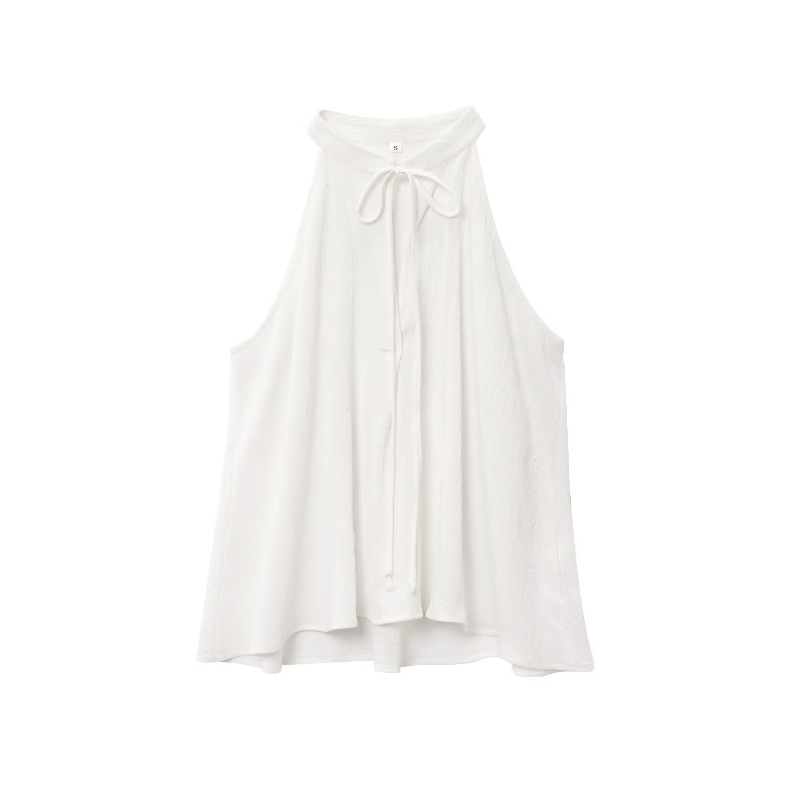 Women's new fashion bow decoration sleeveless linen blend hanging neck top+Skirts Women's suit