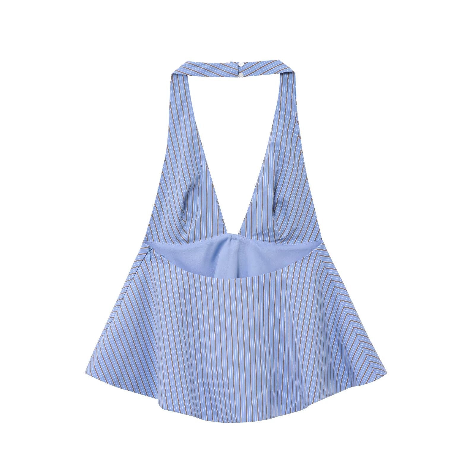 Women's new fashion bow decoration striped hanging neck collar backless top