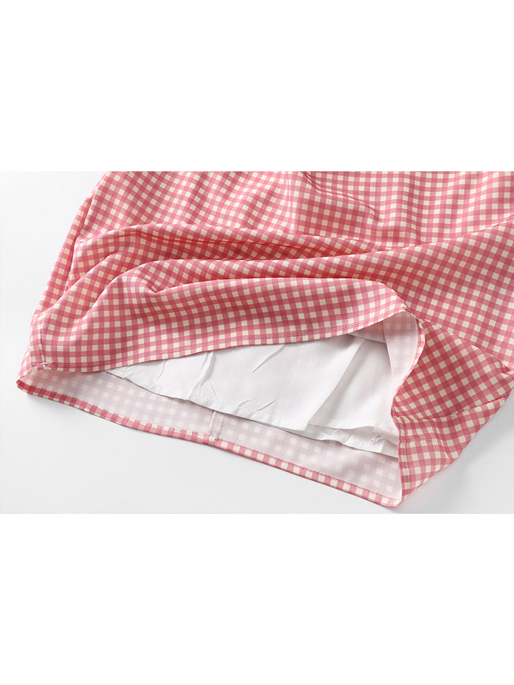 Women's New Fashion bow Lace up decoration slim plaid mini dress