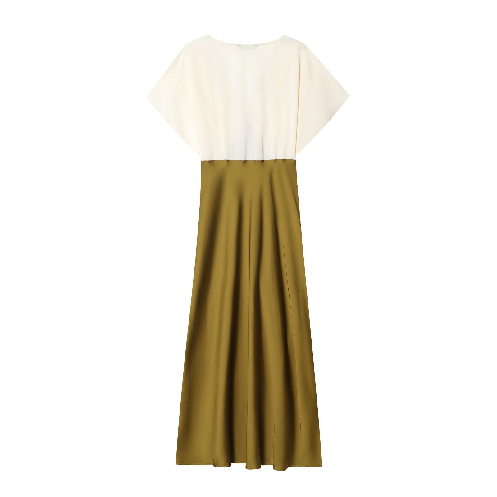 Women's new fashion contrasting lace V-neck satin texture MIDI dress