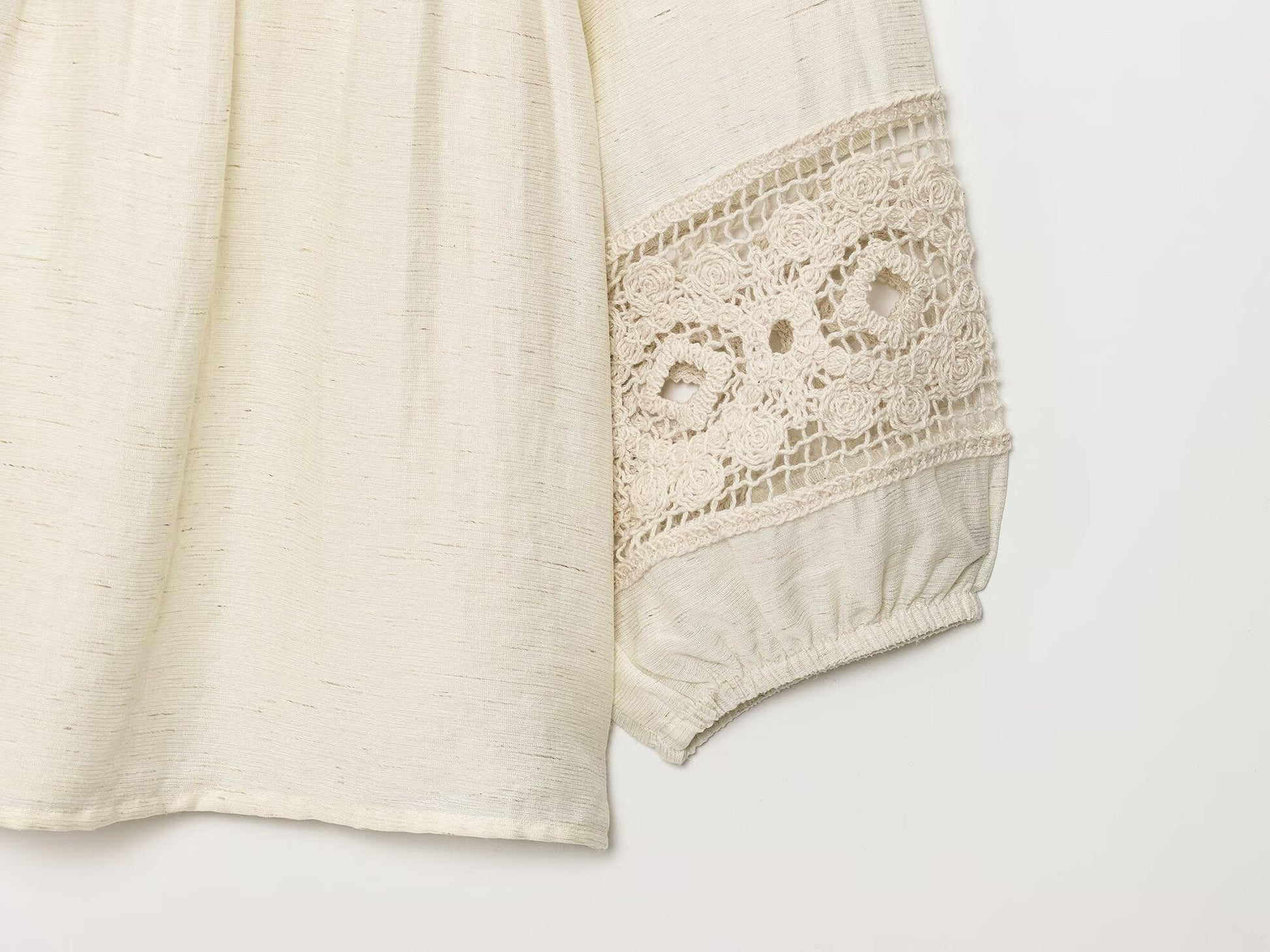 Women's New Fashion Crochet Knitted Splicing Long Sleeve Shirt
