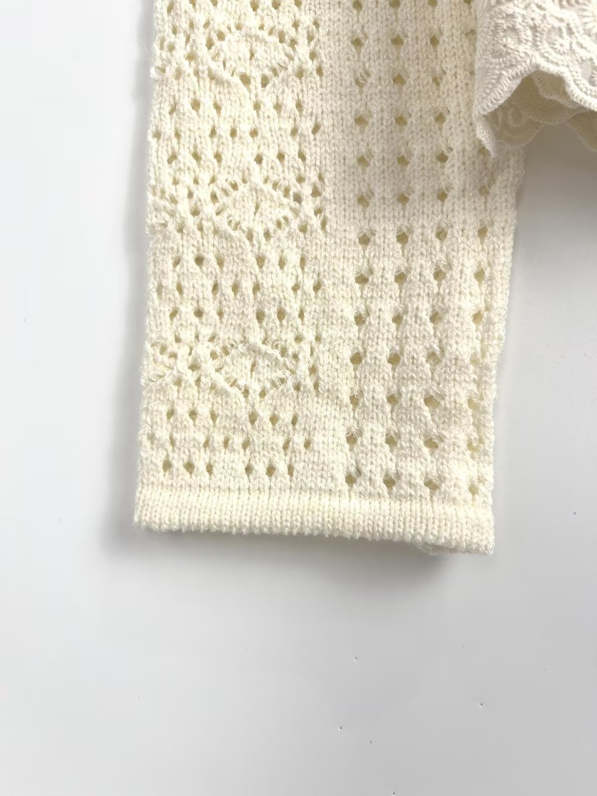 Women's New Fashion embroidered hem Hollow Splicing Knitted Cardigan