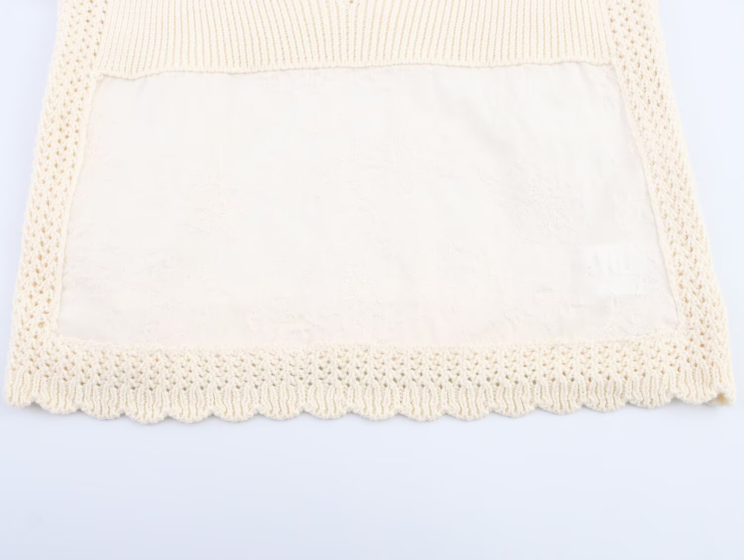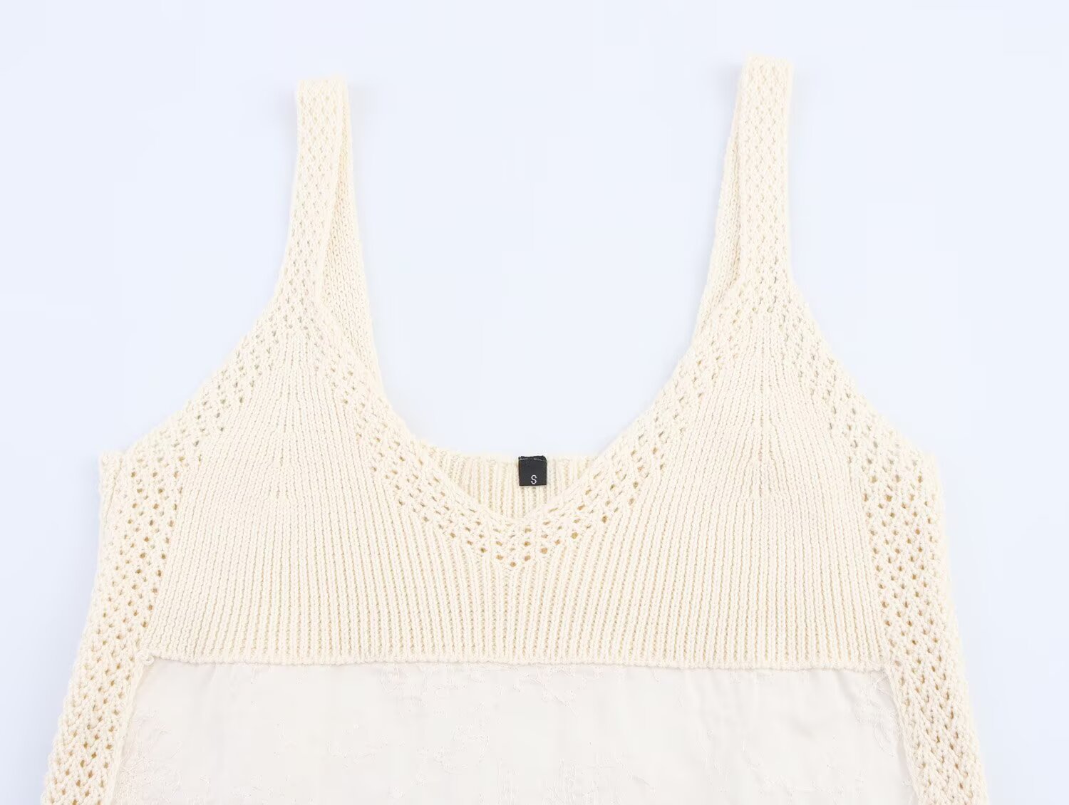 Women's New Fashion Embroidered Splicing Wide Shoulder Strap Knitted Top