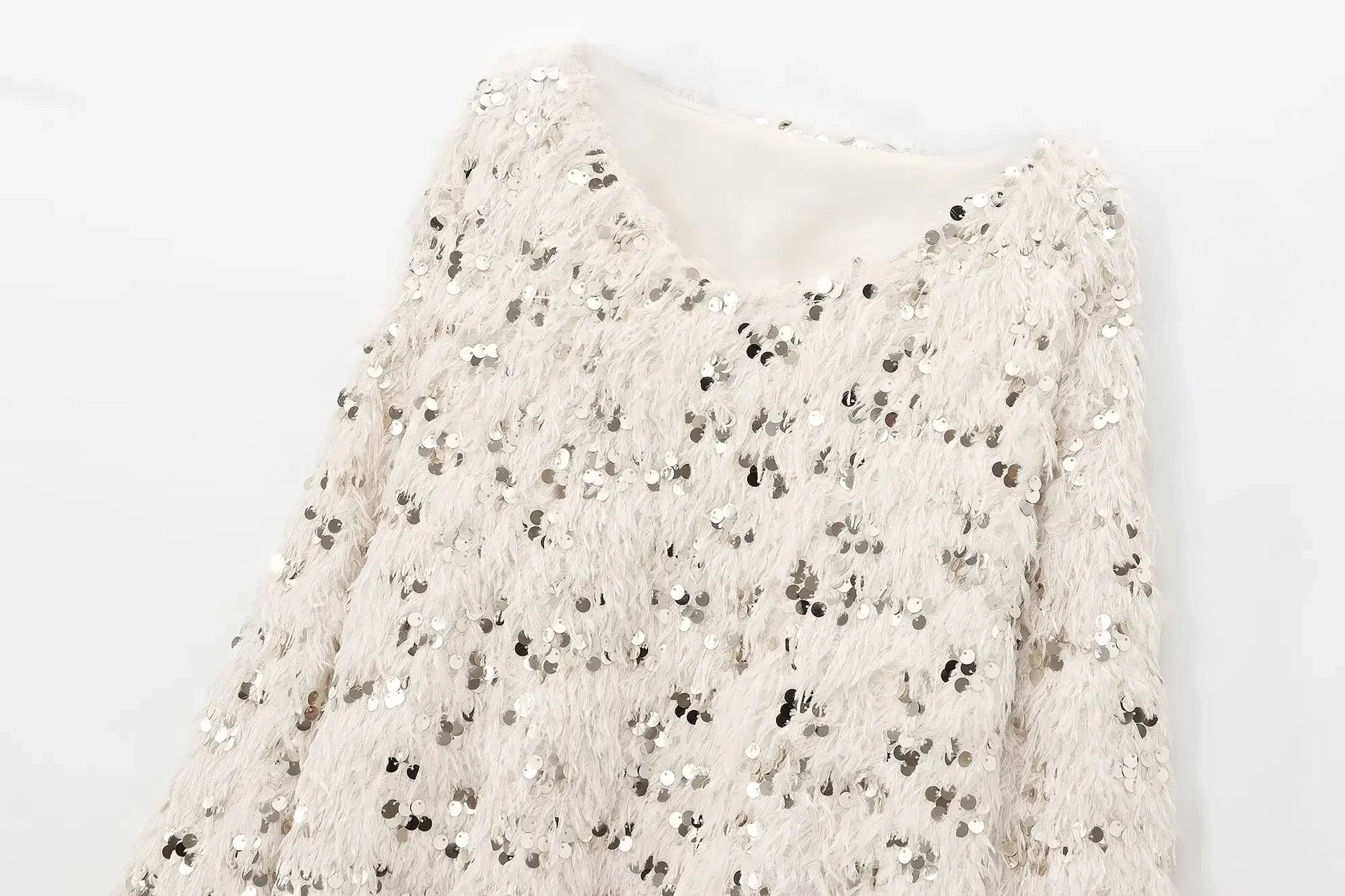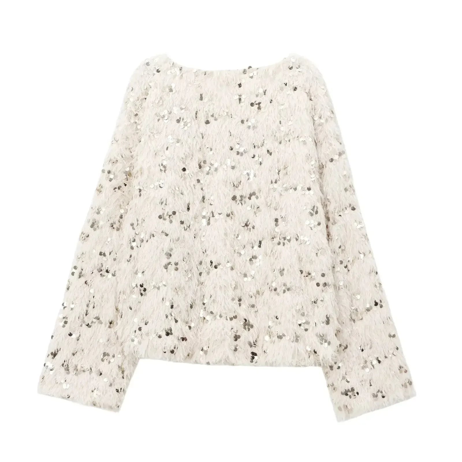 Women's new fashion feather sequin decoration loose casual V Neck knitted sweater retro long sleeved women's pullover chic top