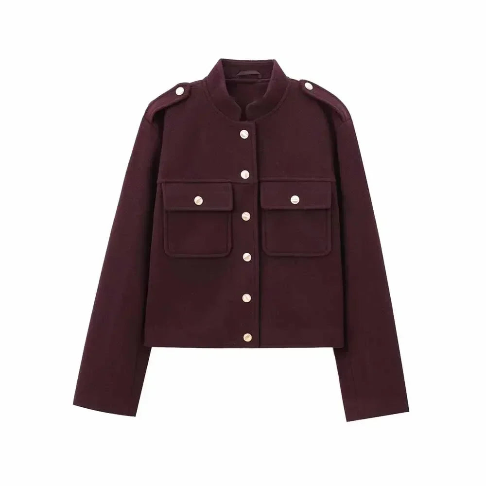 Women's new fashion flap pocket decoration casual soft texture short jacket retro long sleeved button up women's coat chic top