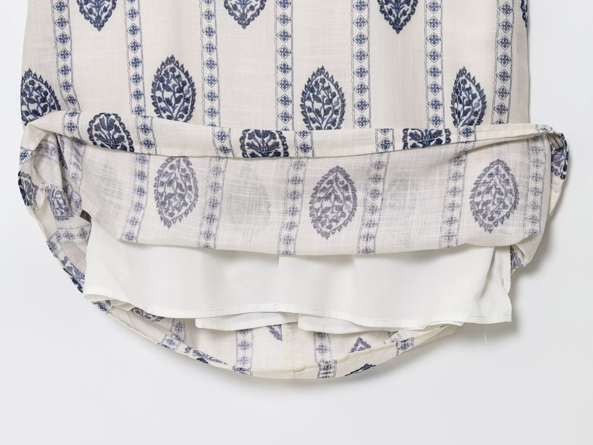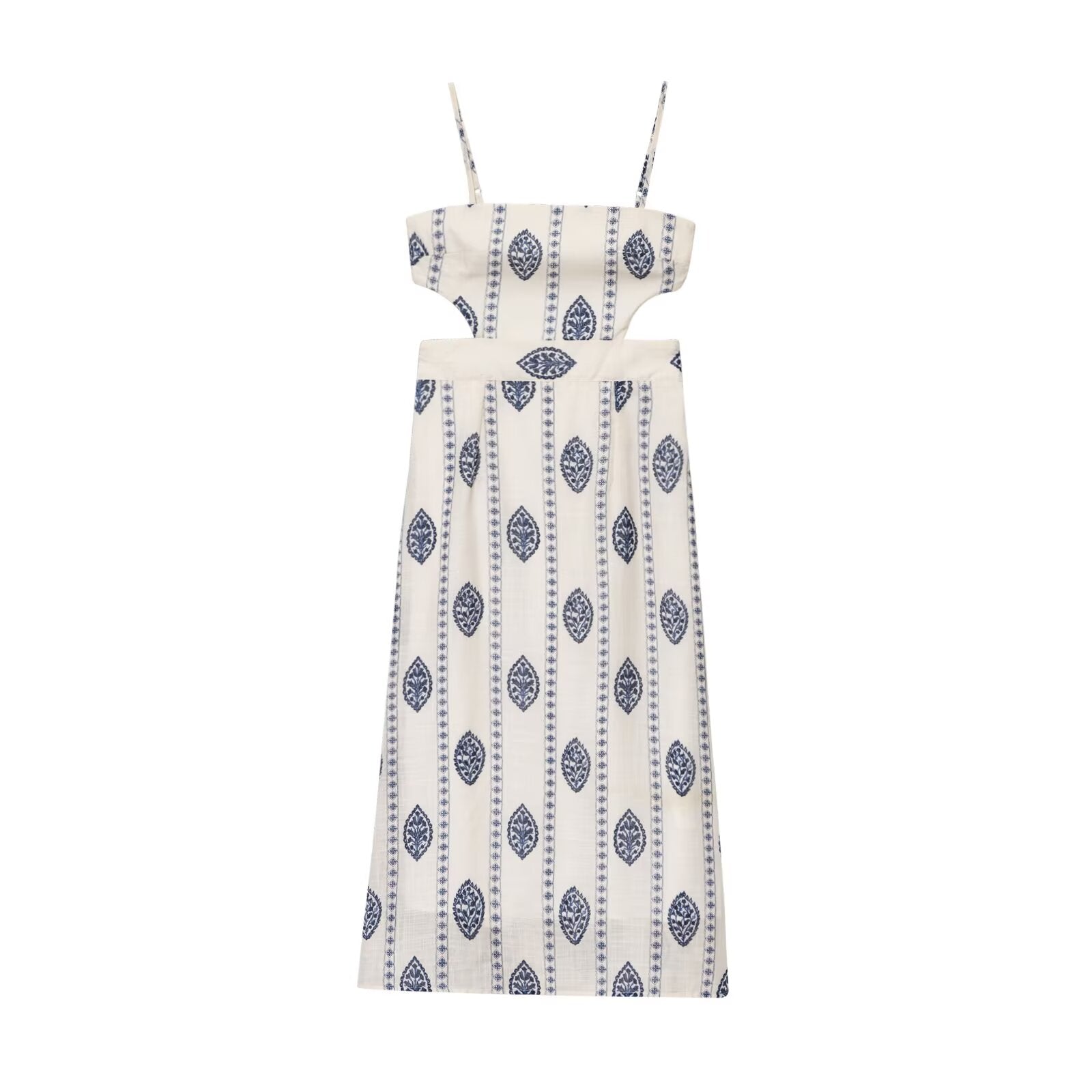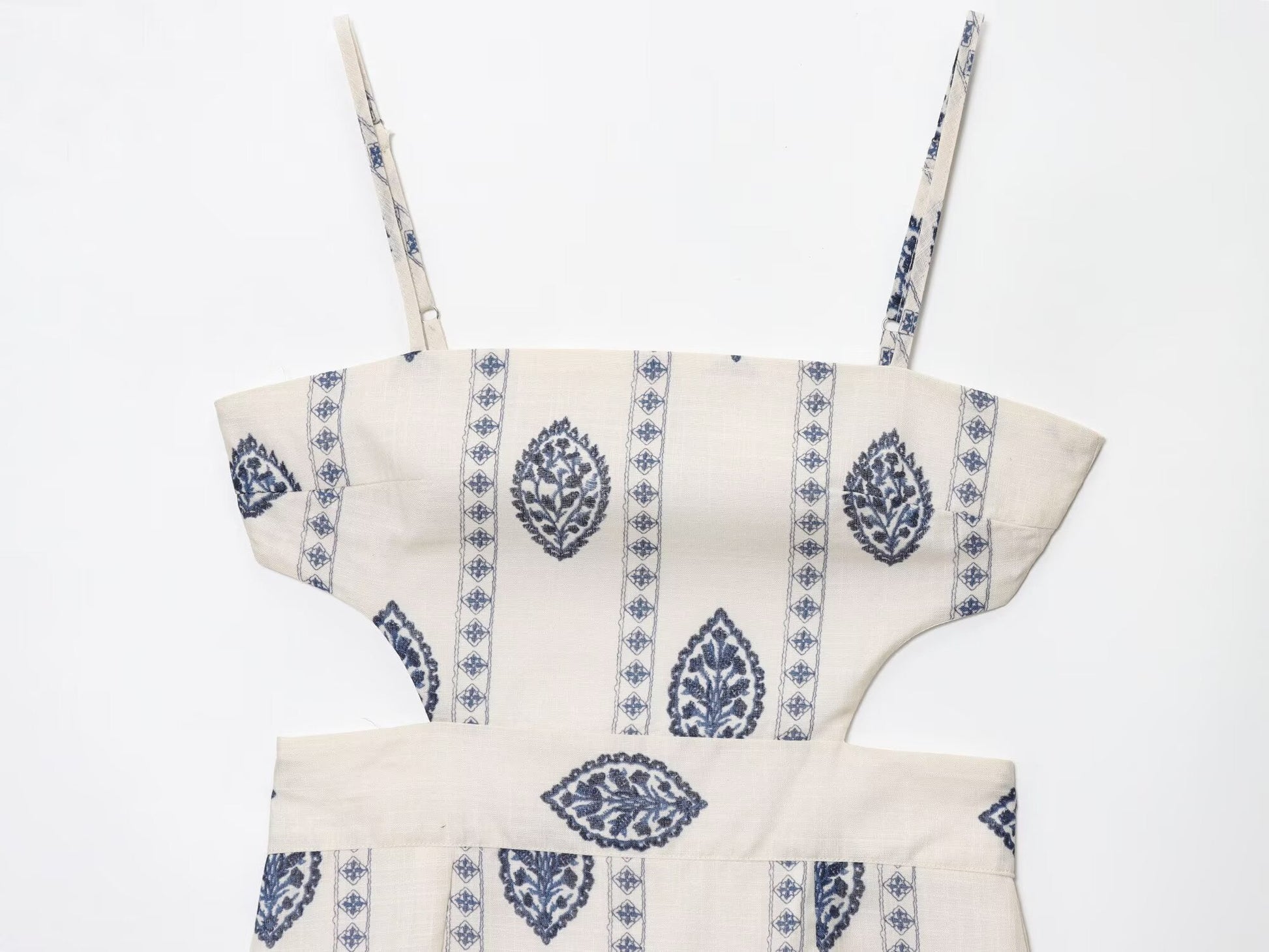 Women's New Fashion Hollow Design Printed suspender Midi Dress