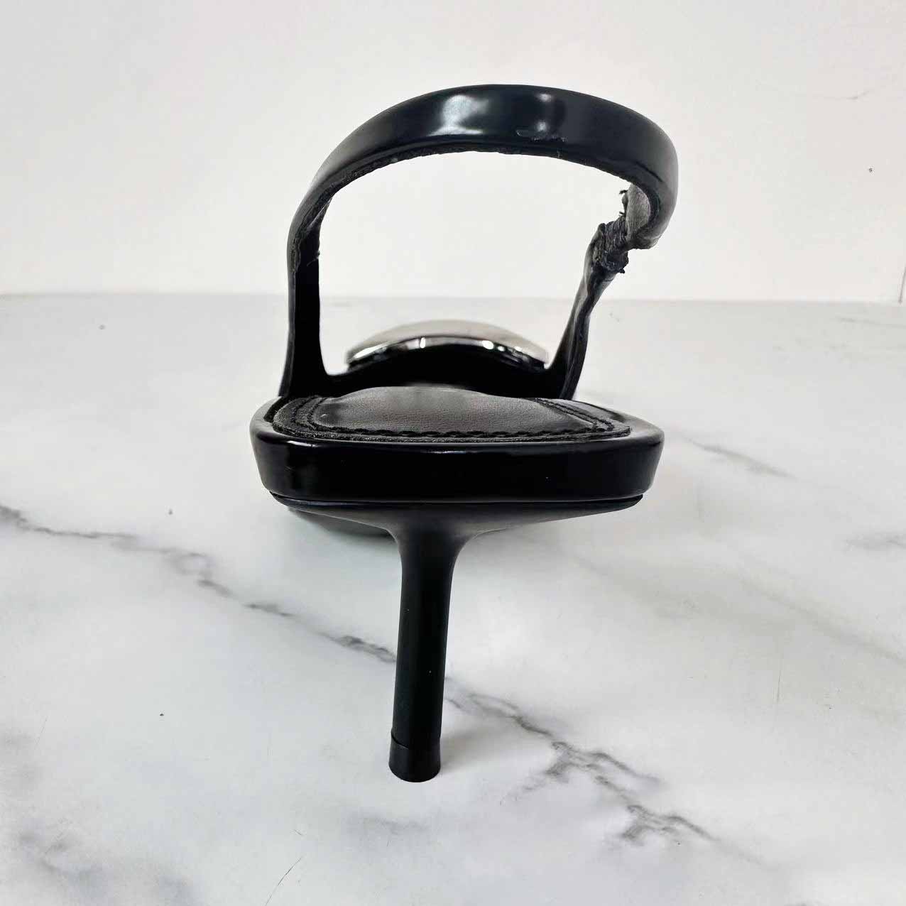 Women's New Fashion Joker Black Fabric Metal Buckle Pointed Stiletto Slippers.