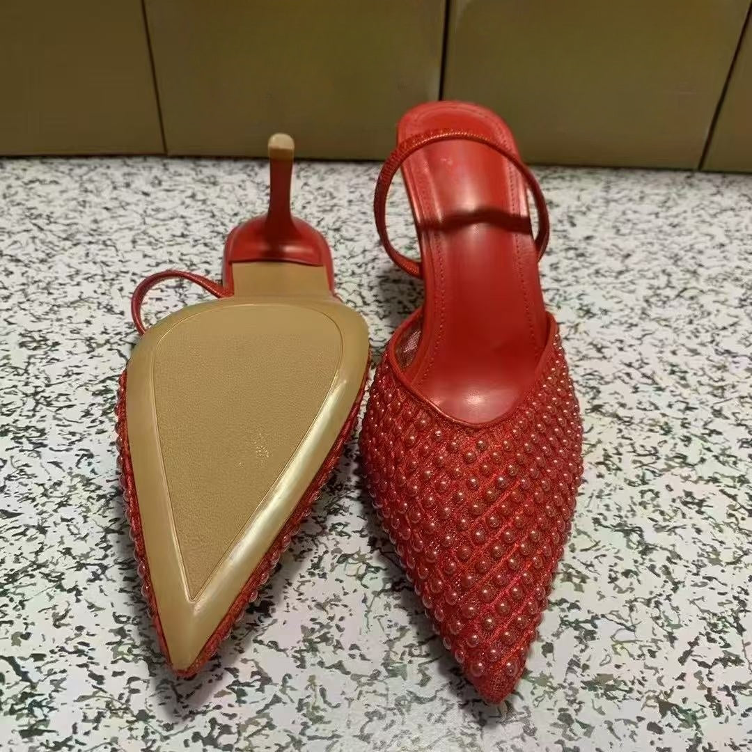 Women's New Fashion Joker Hollow Rhinestone Decorative Pointed Stiletto Sandals.