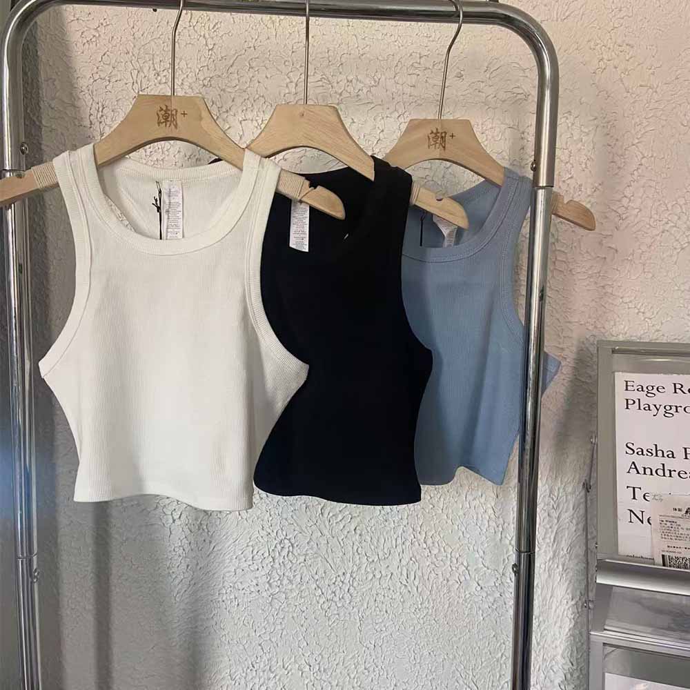 Women's new fashion Joker short yoga clothing sports vest knitted thread fitness running back sling top.