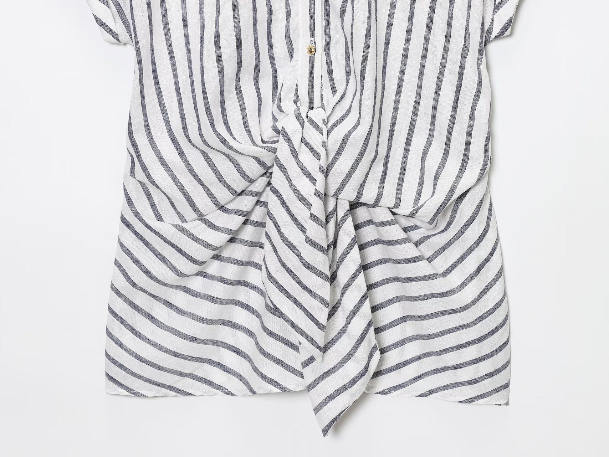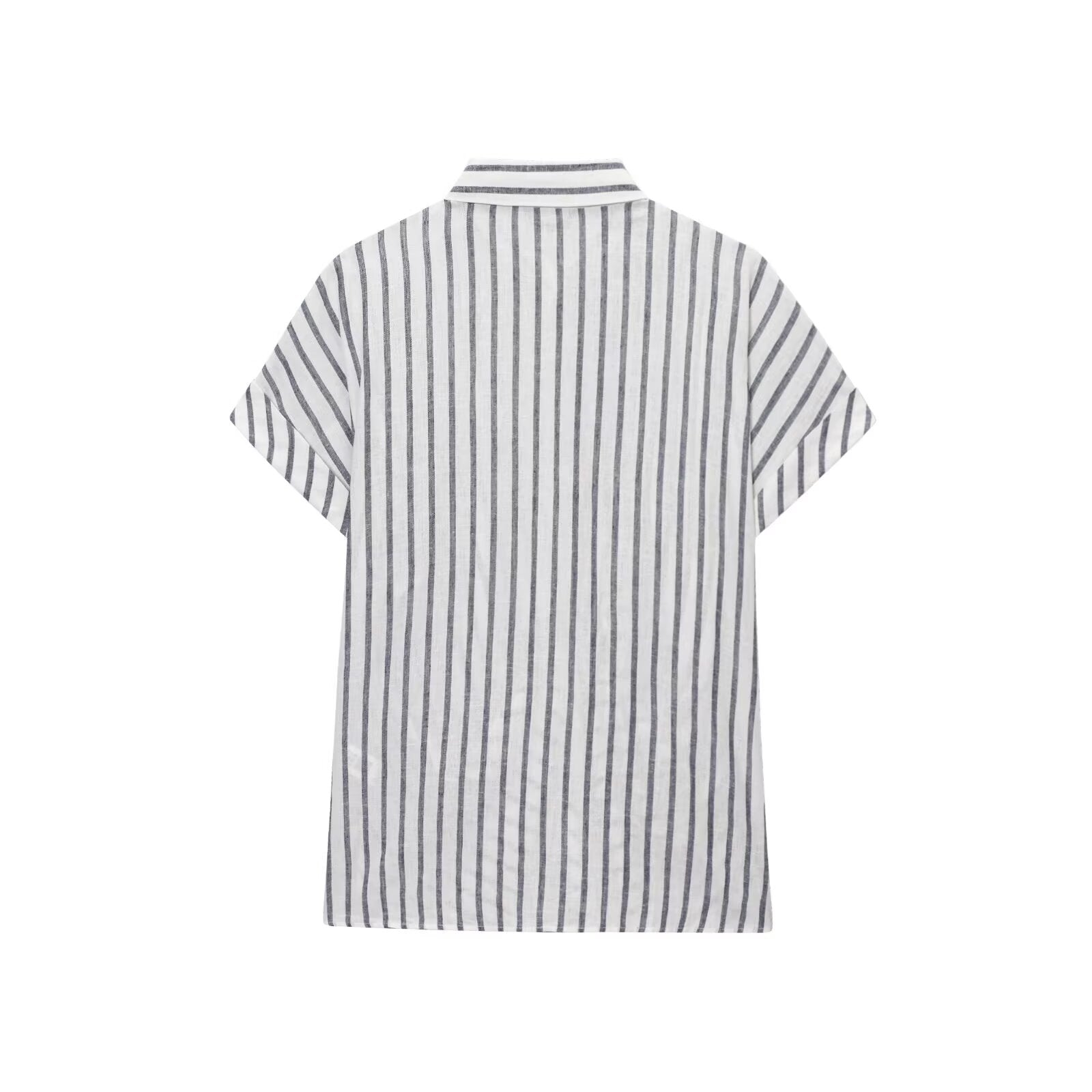 Women's new fashion knot decoration linen blended striped shirt