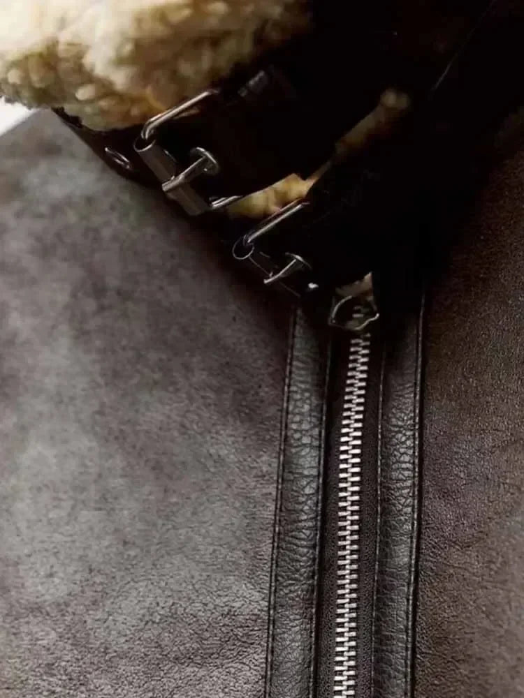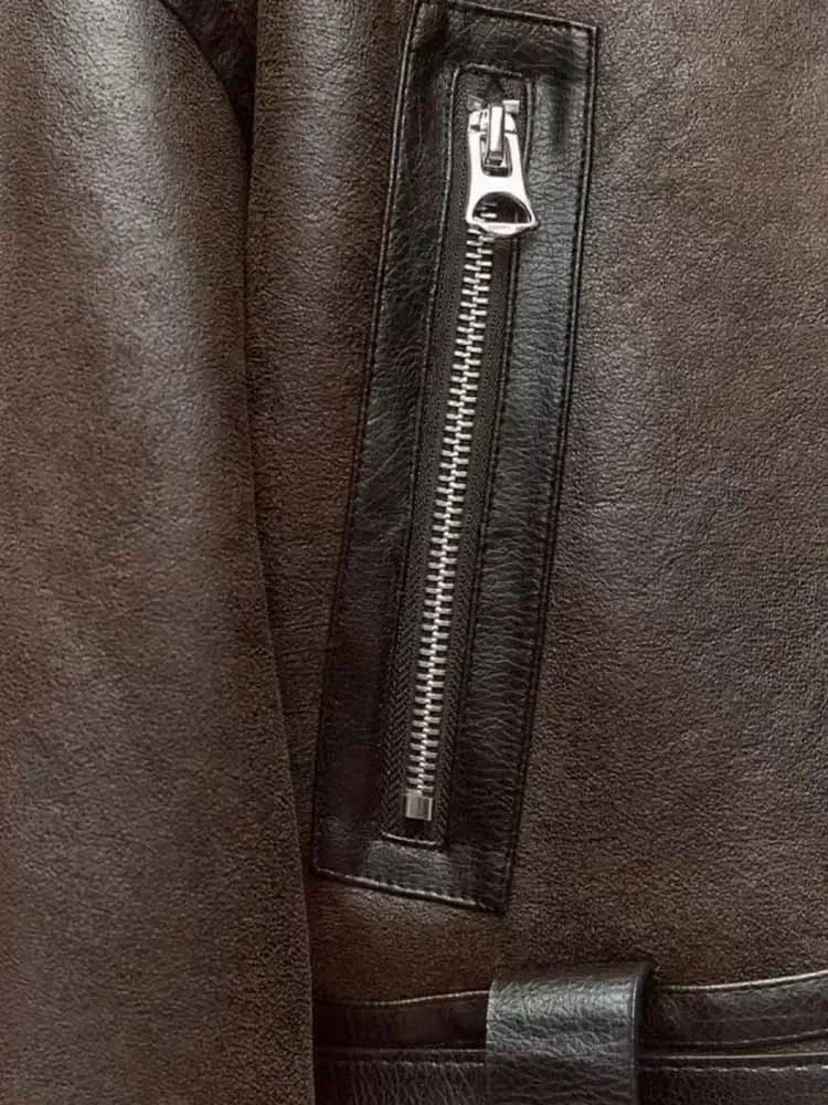 Women's new fashion Loose casual hort double-sided Fur Faux Leather jacket coat retro long sleeved zipper women's coat
