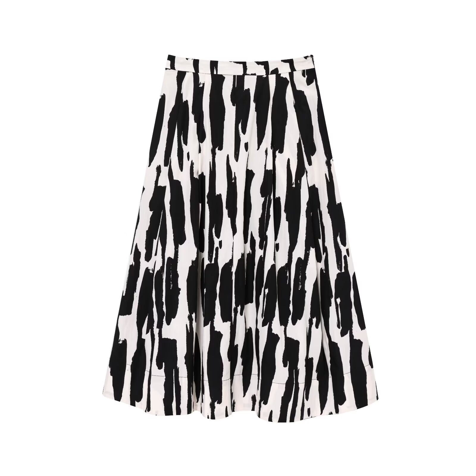 Women's new fashion loose high waisted printed pleated MIDI skirt