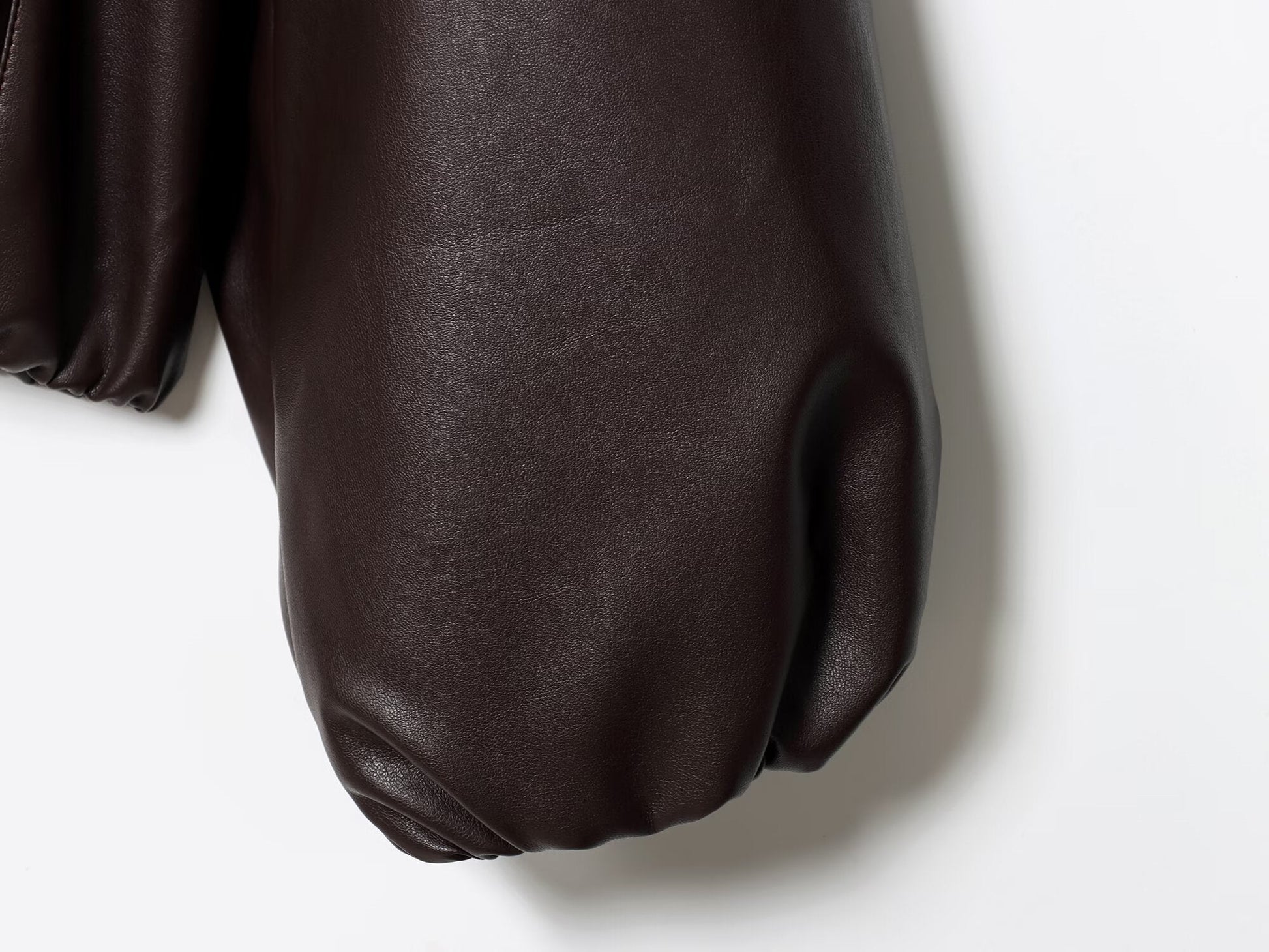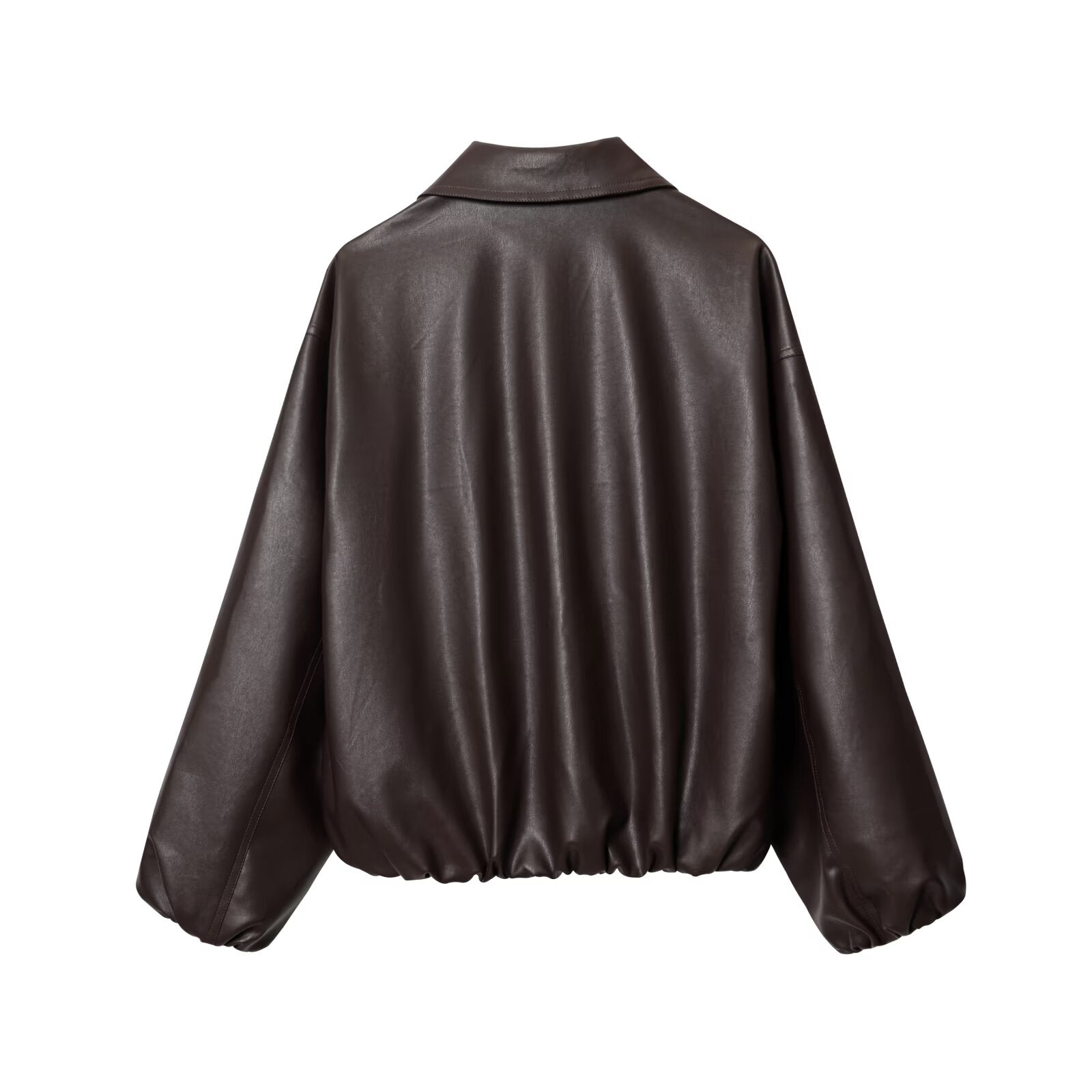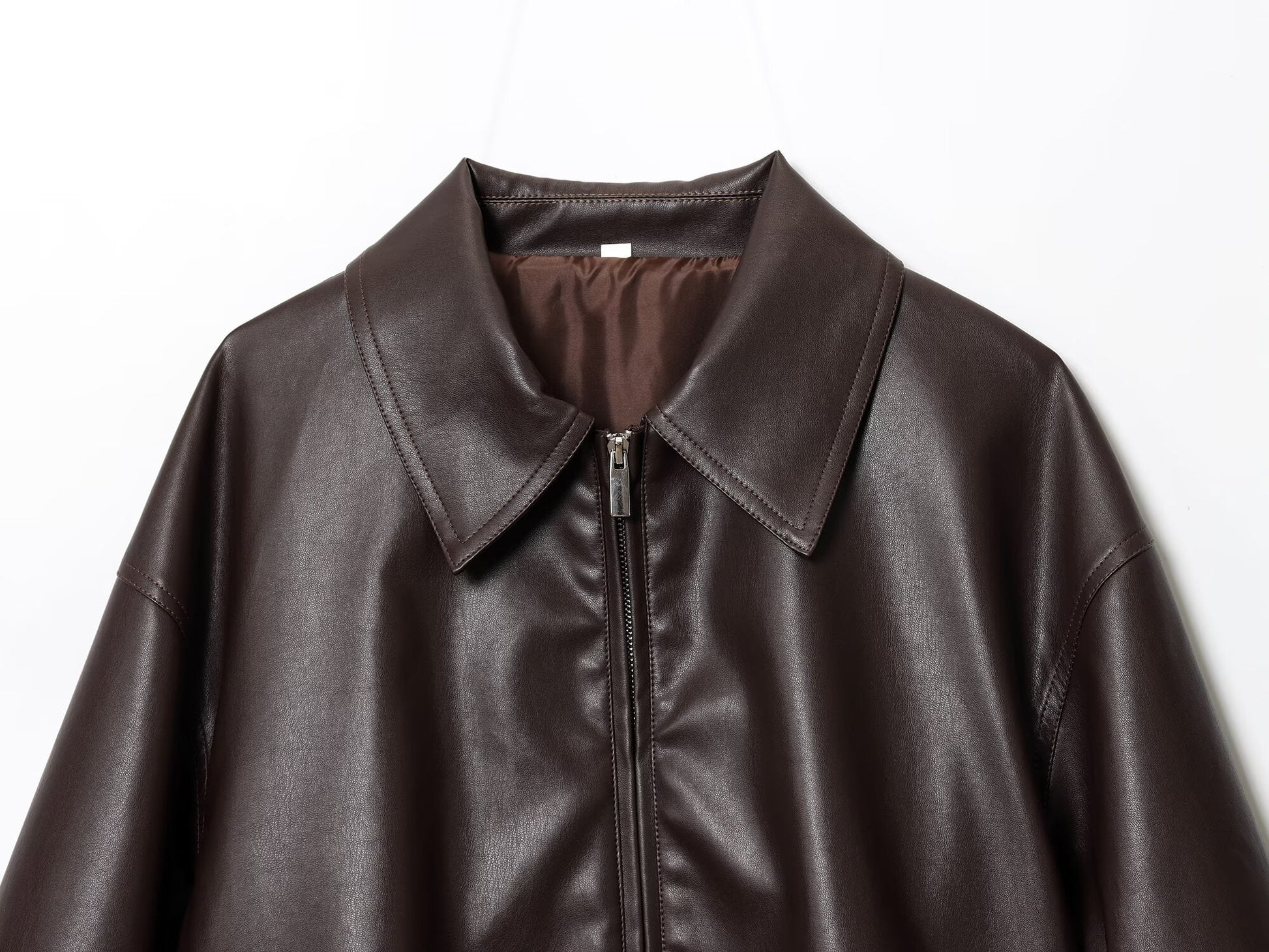 Women's new fashion loose zipper faux leather flight jacket Coat