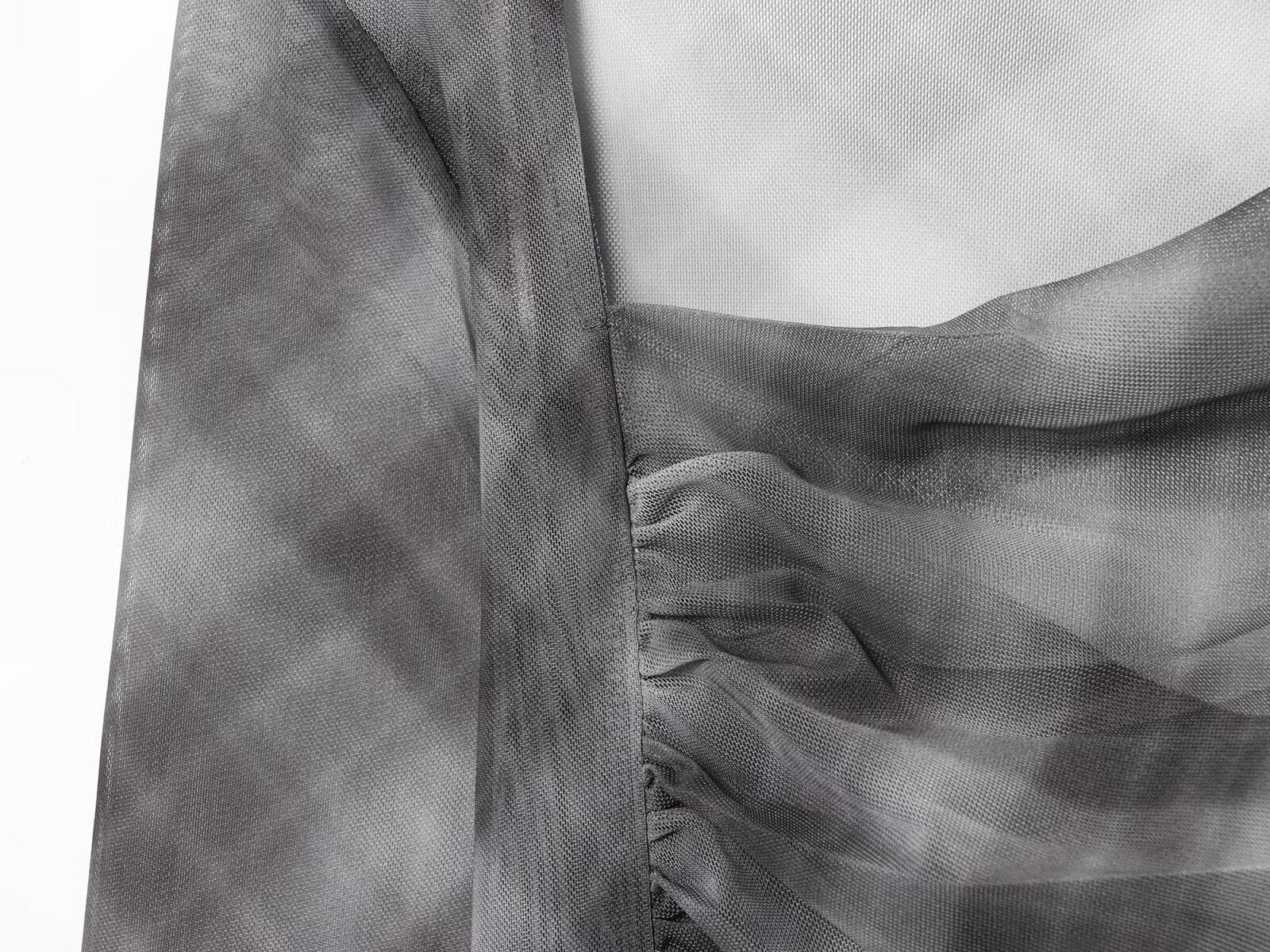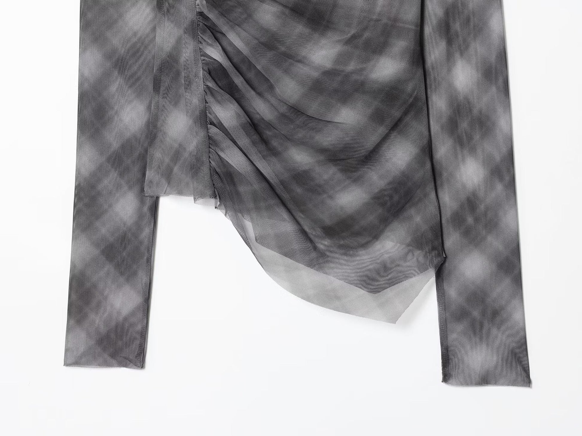 Women's new fashion pleated design slim plaid tulle T-shirt