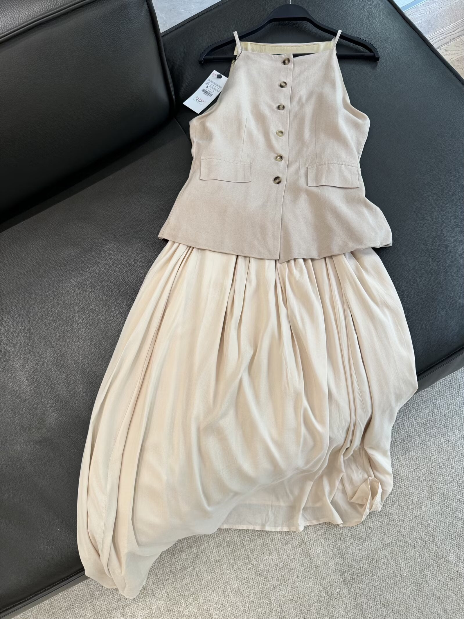 Women's new fashion pleated skirt hem vest style MIDI dress