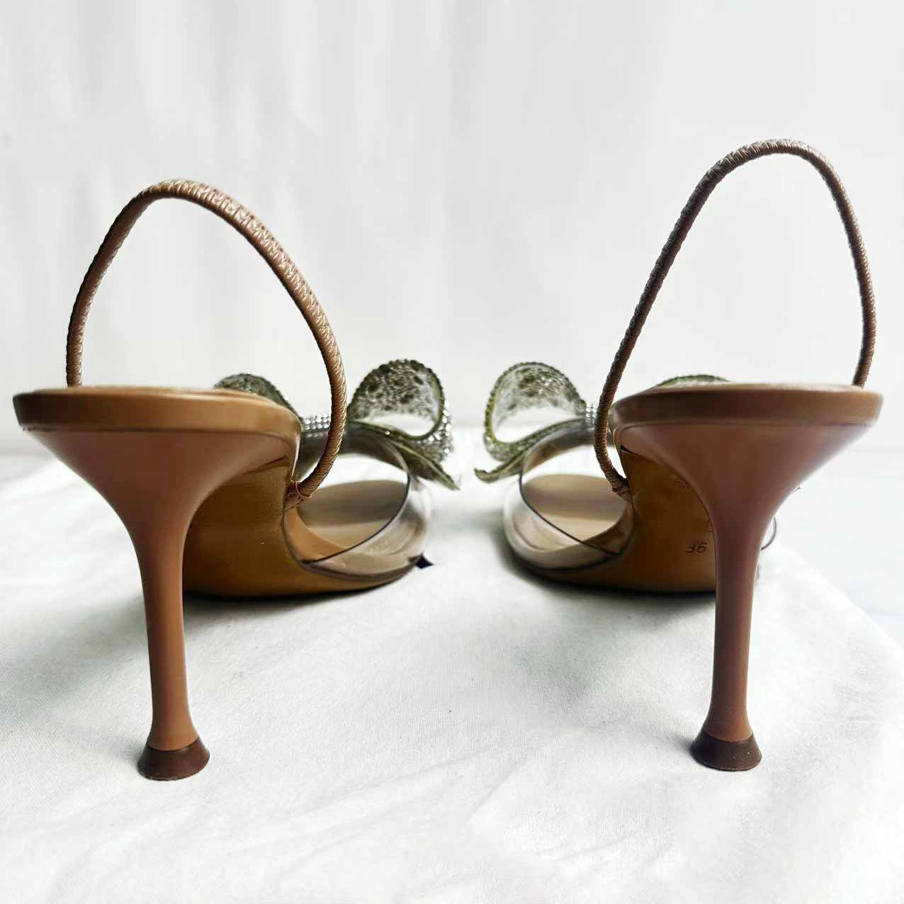 Women's New Fashion Rhinestone Bow Decorated with Transparent Plastic High-heeled Sandals and Open-toed Sandals.