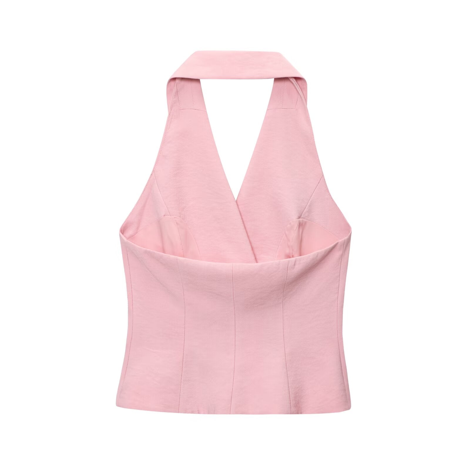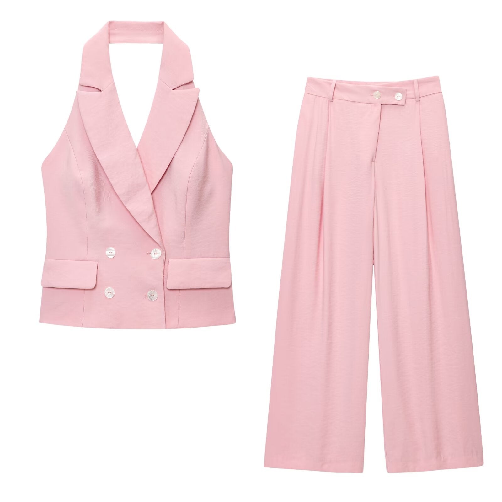 Women's new fashion sleeveless double breasted halter neck vest +Pants suit