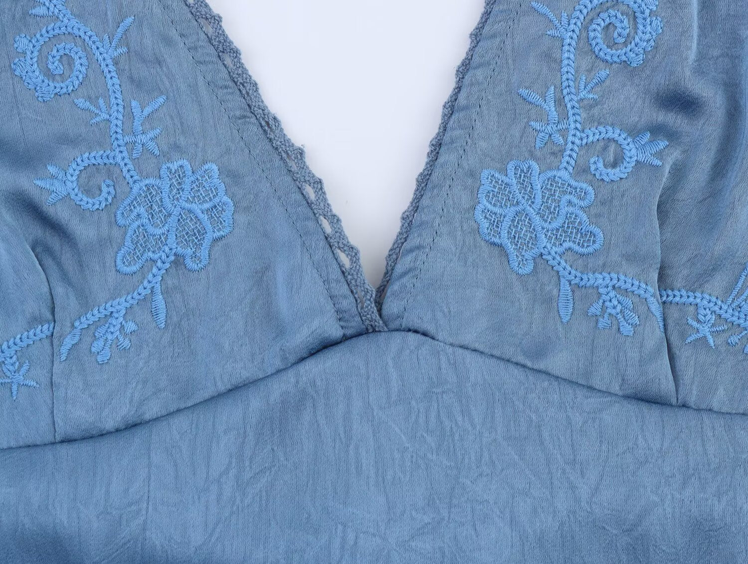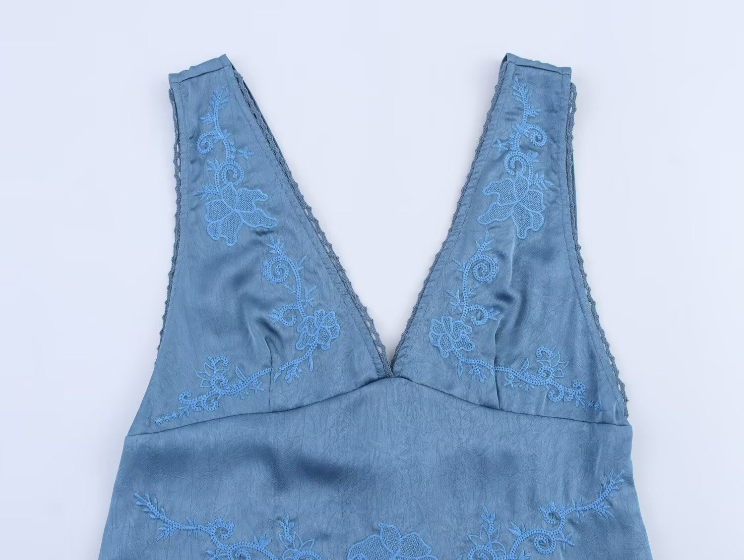 Women's new fashion sleeveless double V-neck embroidered MIDI dress