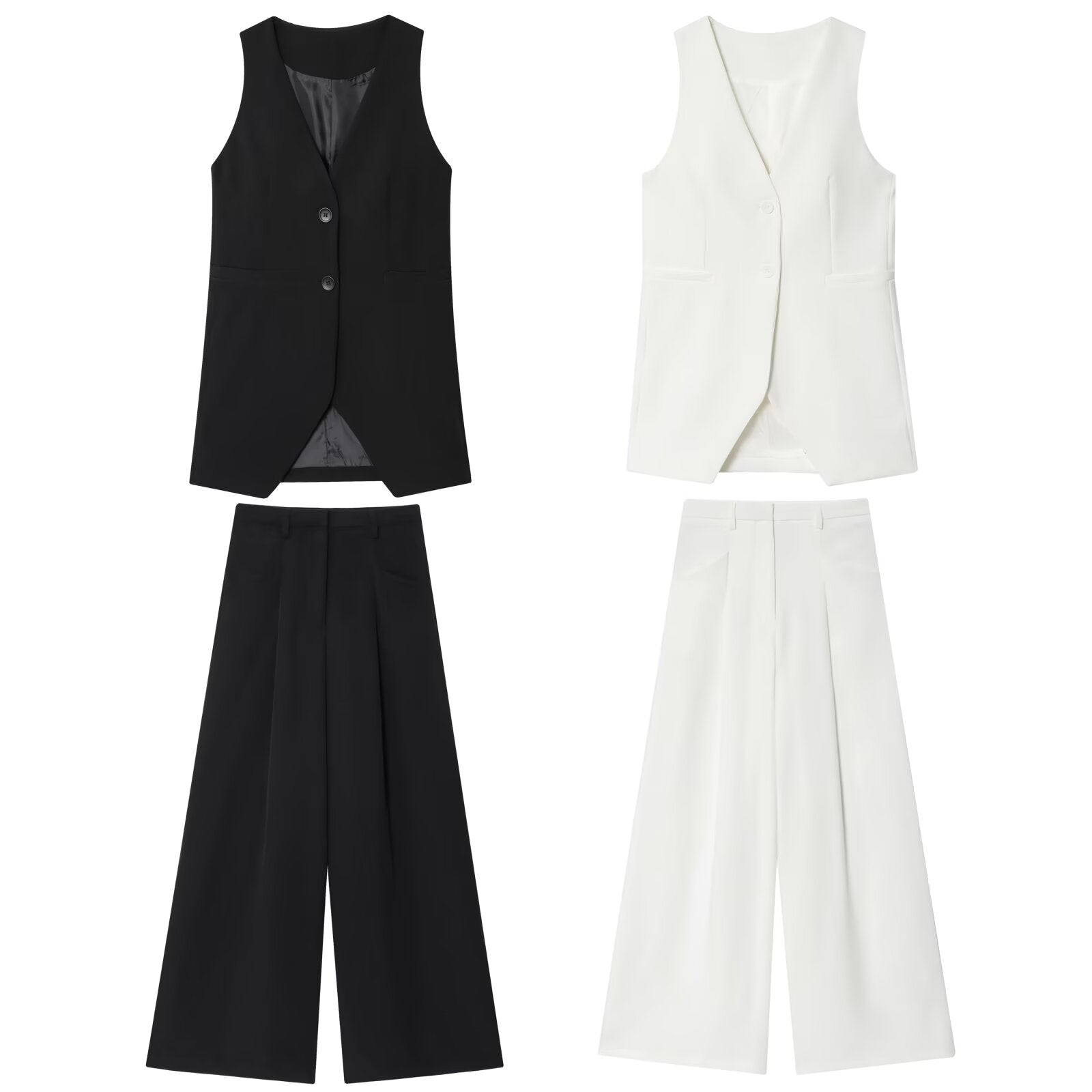 Women's new fashion slim single breasted V-neck vest+Pants suit