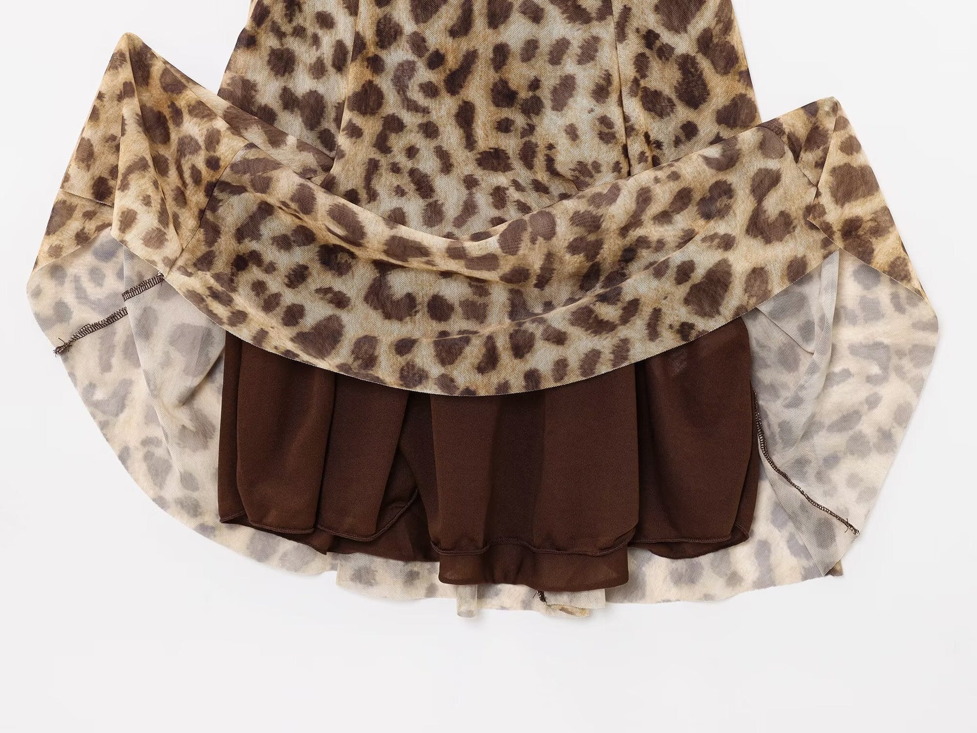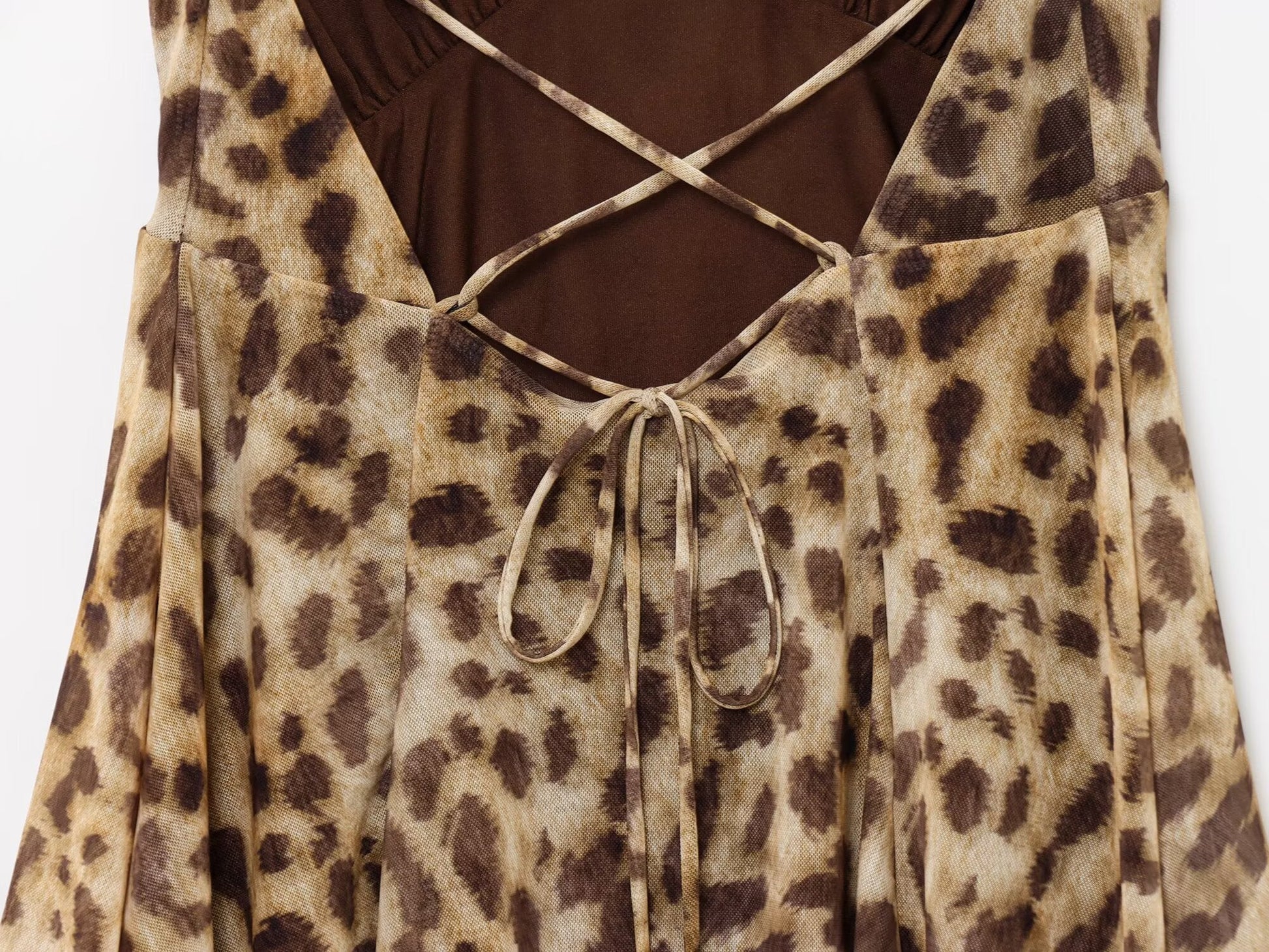 Women's new Fashion slim V-neck printed tulle suspender mini dress