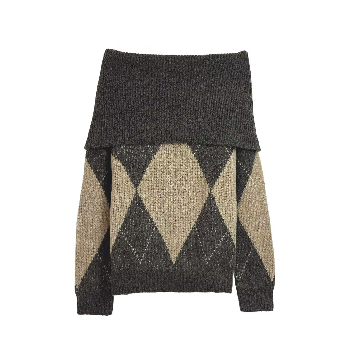 Women's new fashion soft texture diamond grid strapless knit sweater