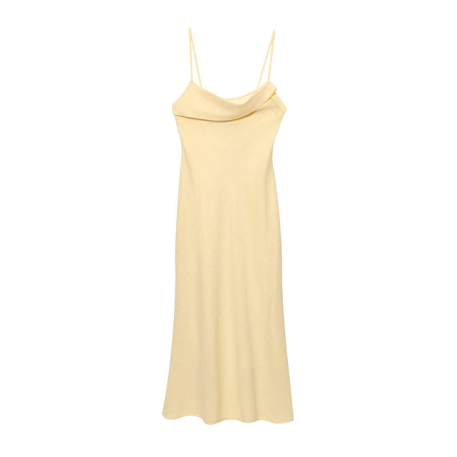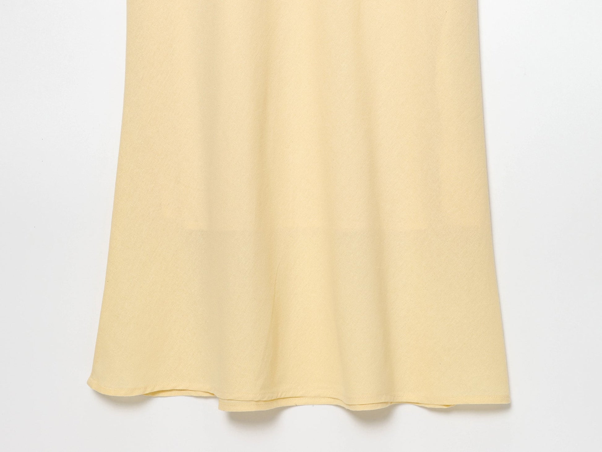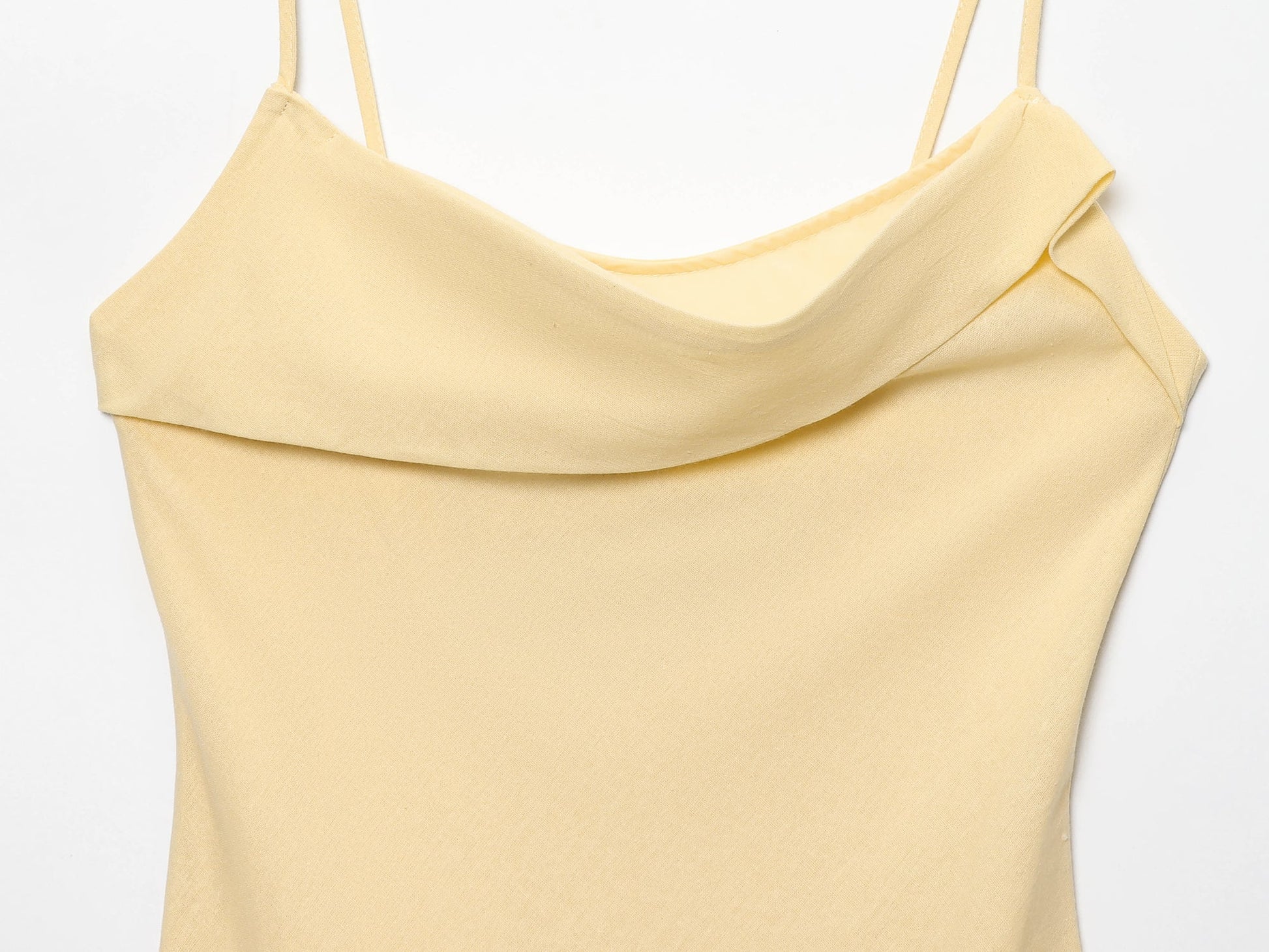 Women's New Fashion Solid Ramie Blended Underwear Style suspender Midi Dress