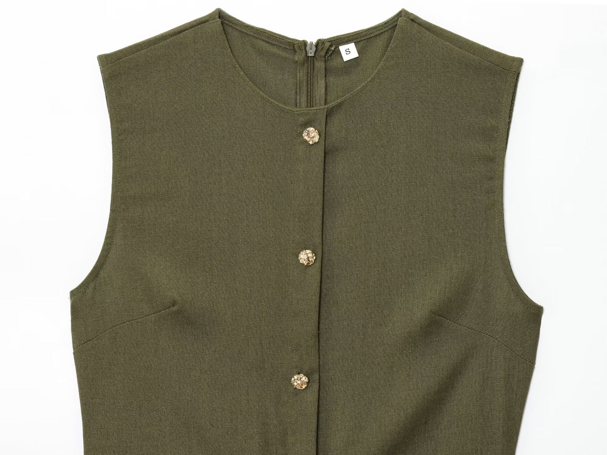 Women's New Fashion With Belt Linen Blended Sleeveless Midi Dress