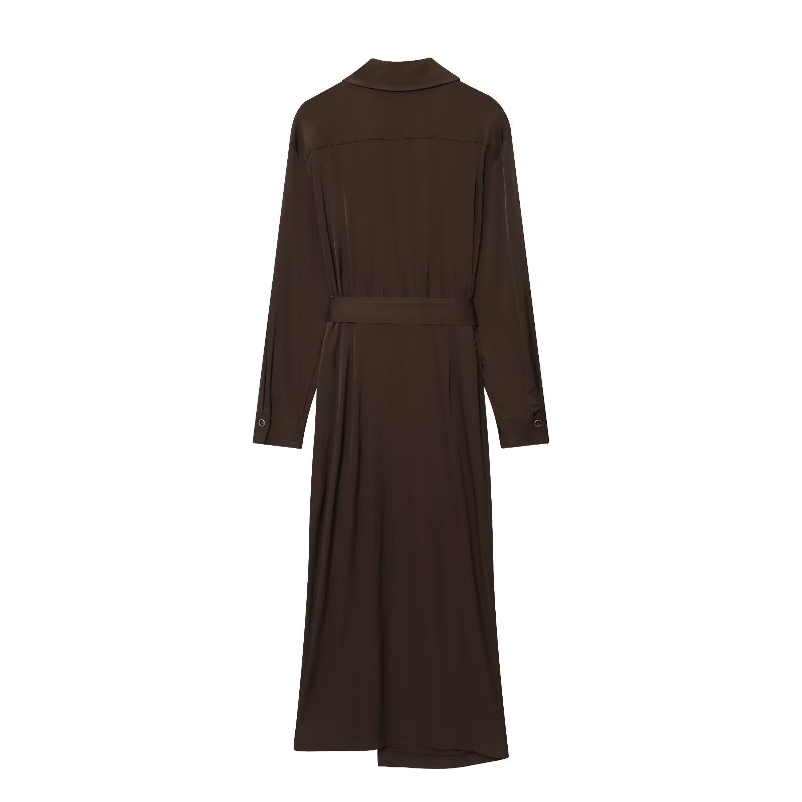 Women's New Fashion With Belt Long Sleeve Pleated Midi Dress