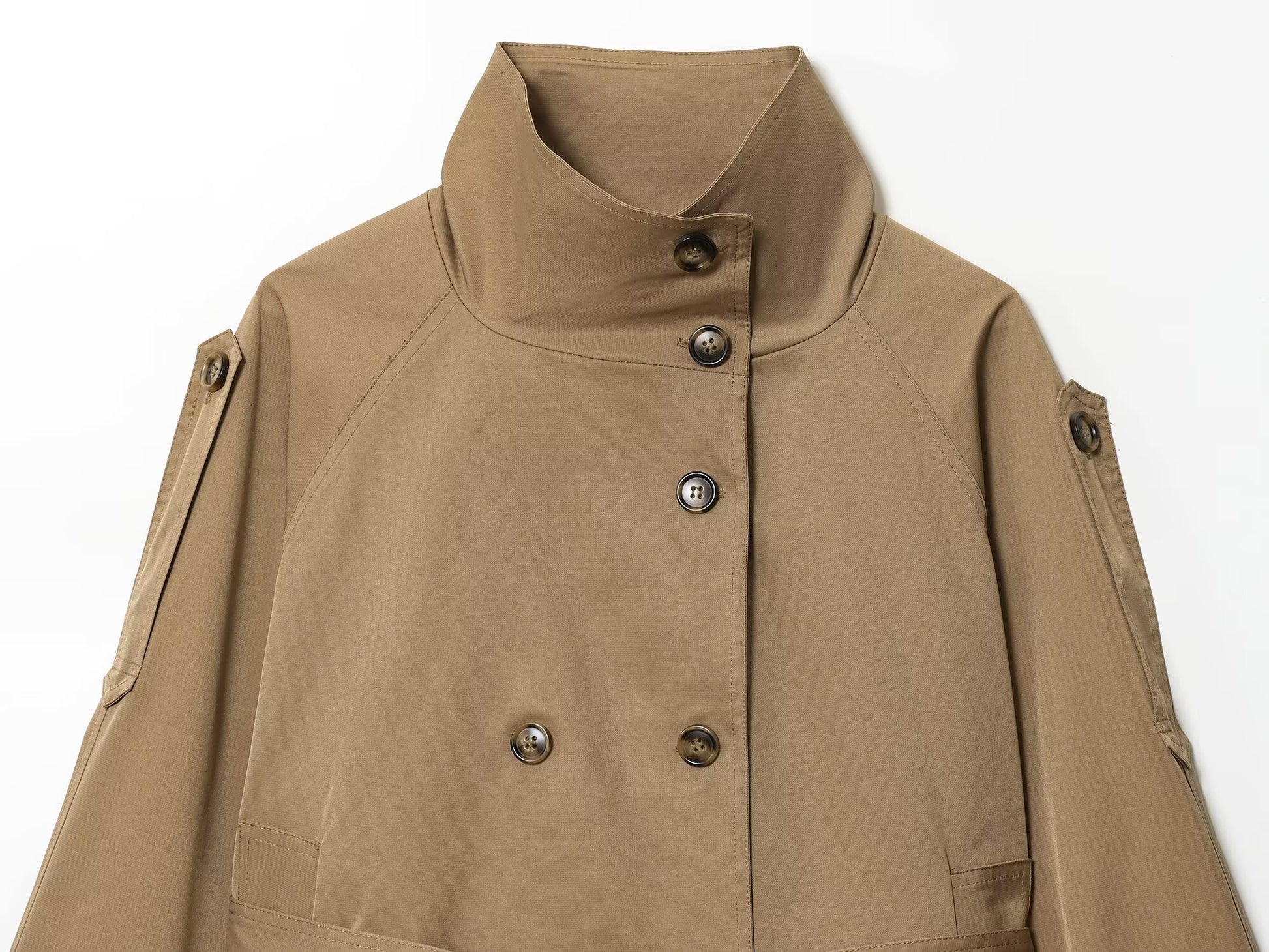 Women's New Fashion With Belt Short Double breasted Windbreaker Coat