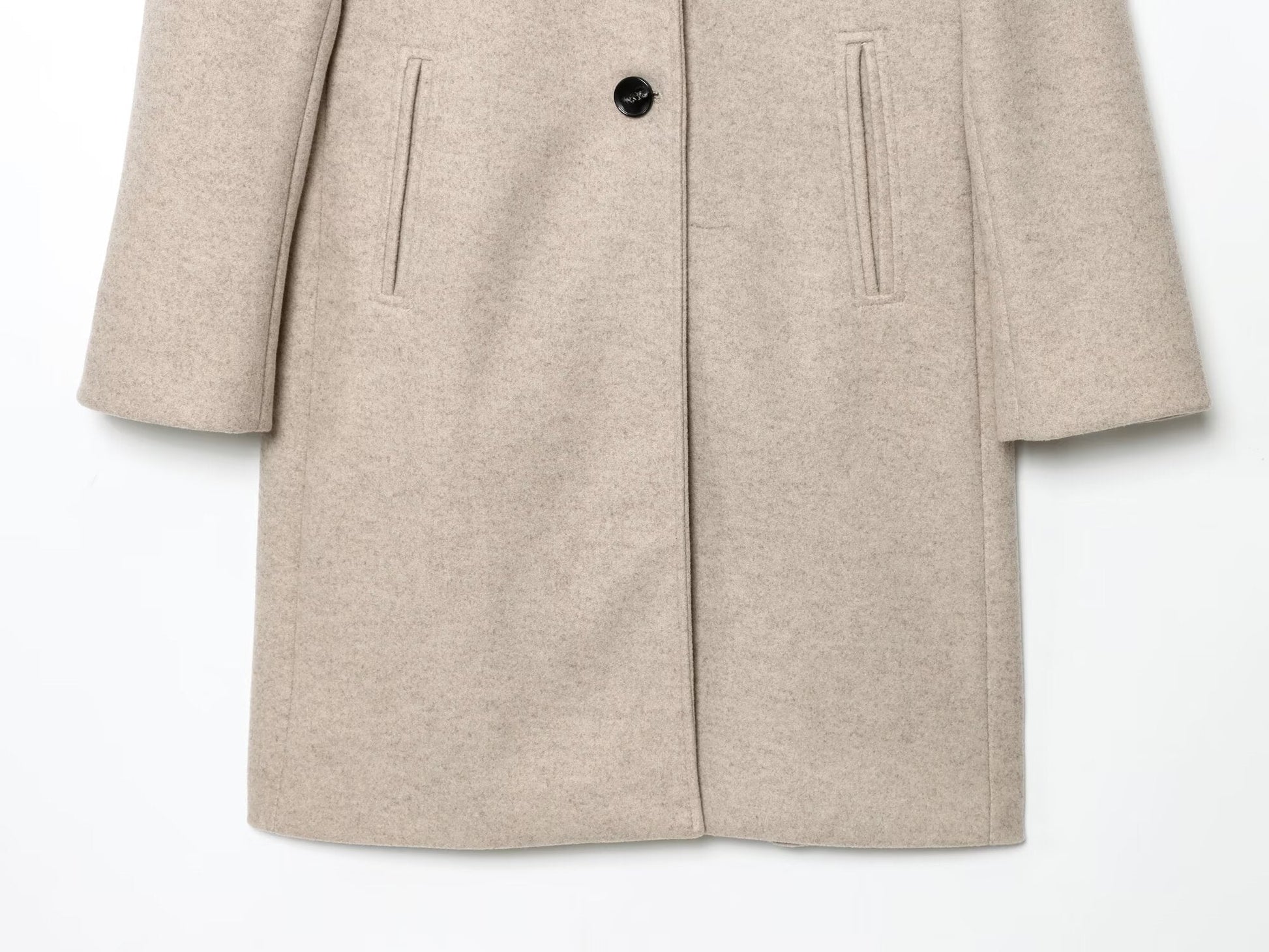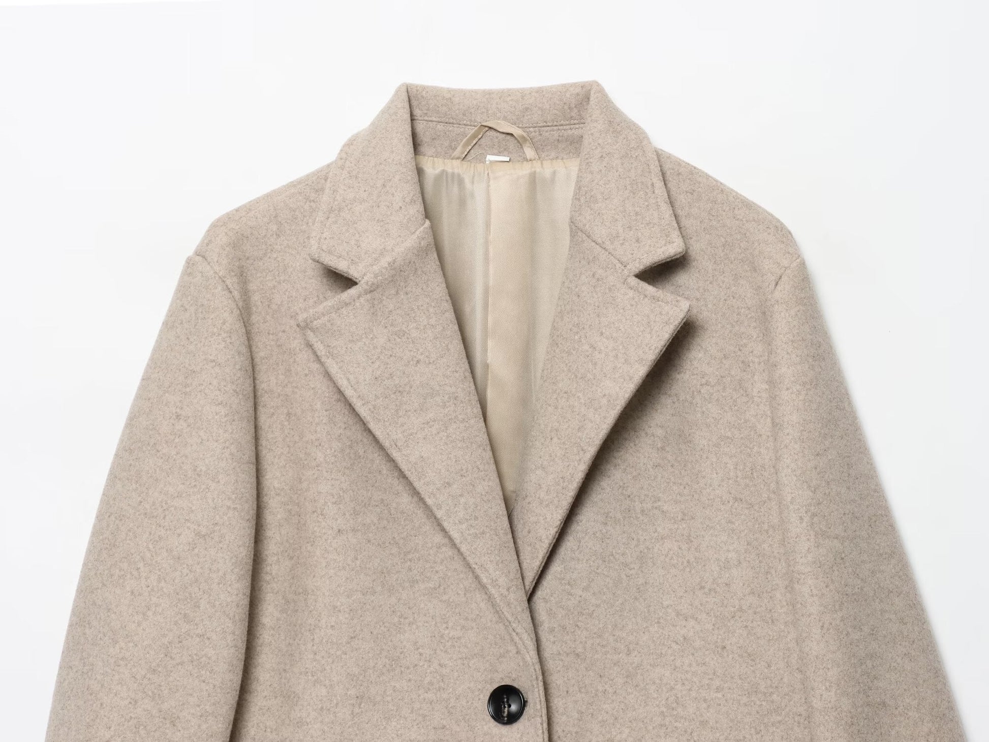 Women's New Fashion with Shoulder Pads Long Style Soft Texture Woolen Coat
